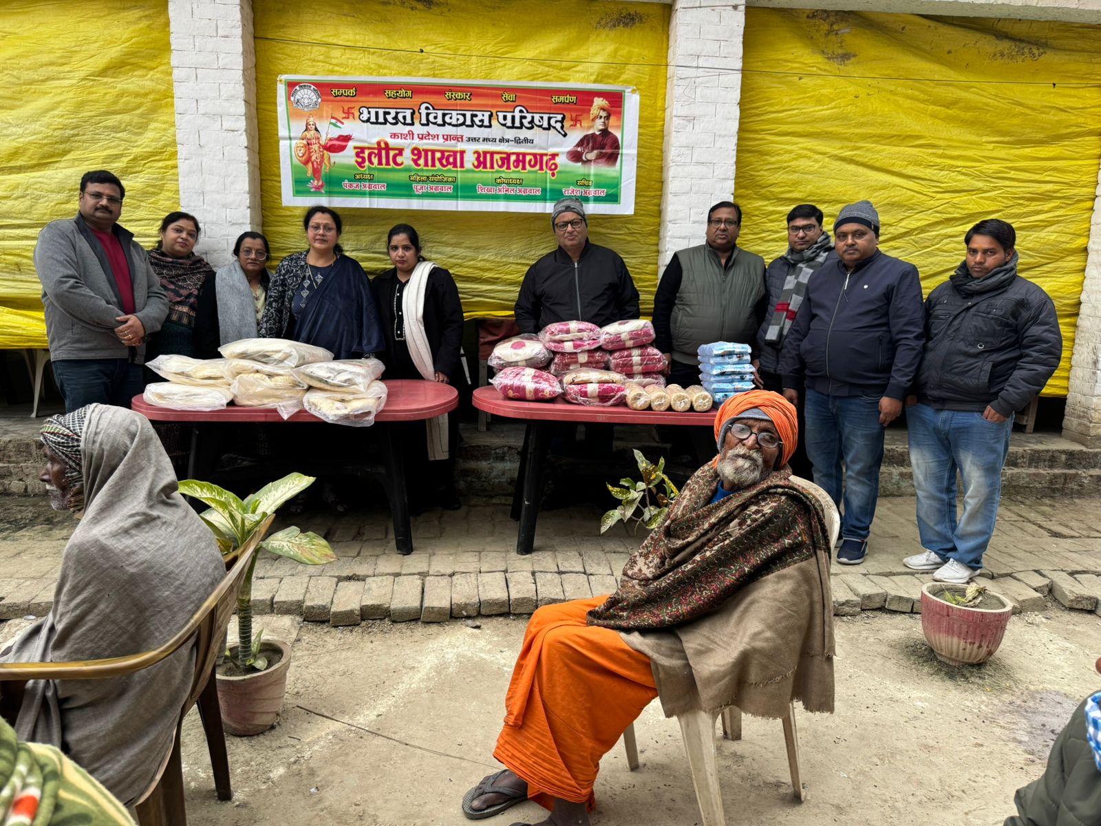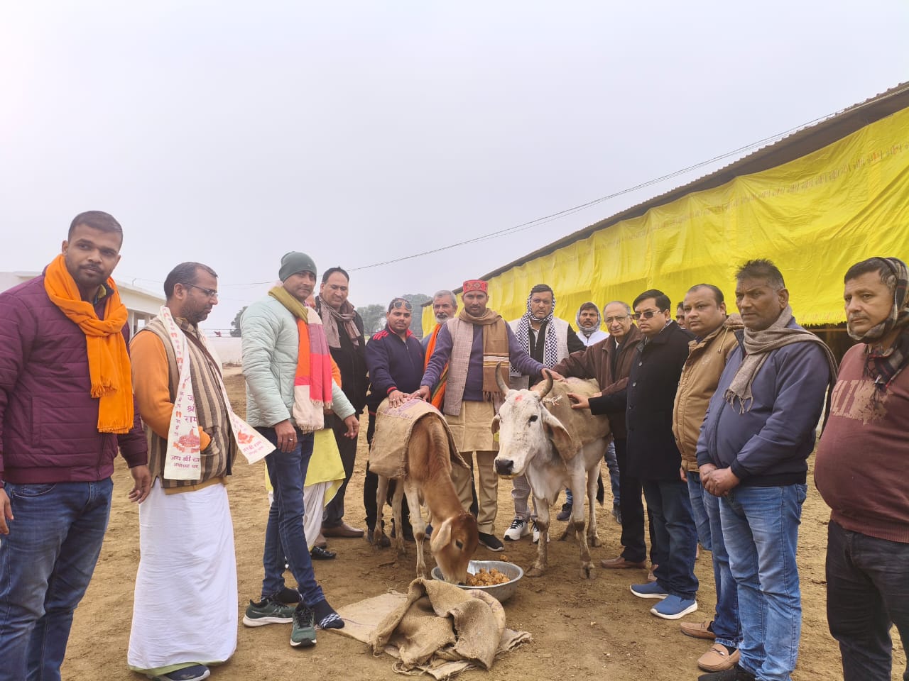 विश्व हिन्दू परिषद गोरक्षा विभाग द्वारा गौशाला पर बांटे गए बोरे से बने हुए वस्त्र । आजमगढ़।सठियाँव ब्लॉक के शाहगढ…