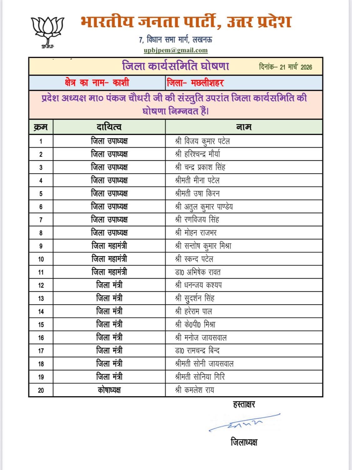 मछलीशहर भाजपा जिला कार्यसमिति घोषित, युवाओं और सामाजिक संतुलन को प्राथमिकता Read moreरक्षाबंधन पर महिलाओं और पुलिस भर्ती के अभ्यर्थियों…
