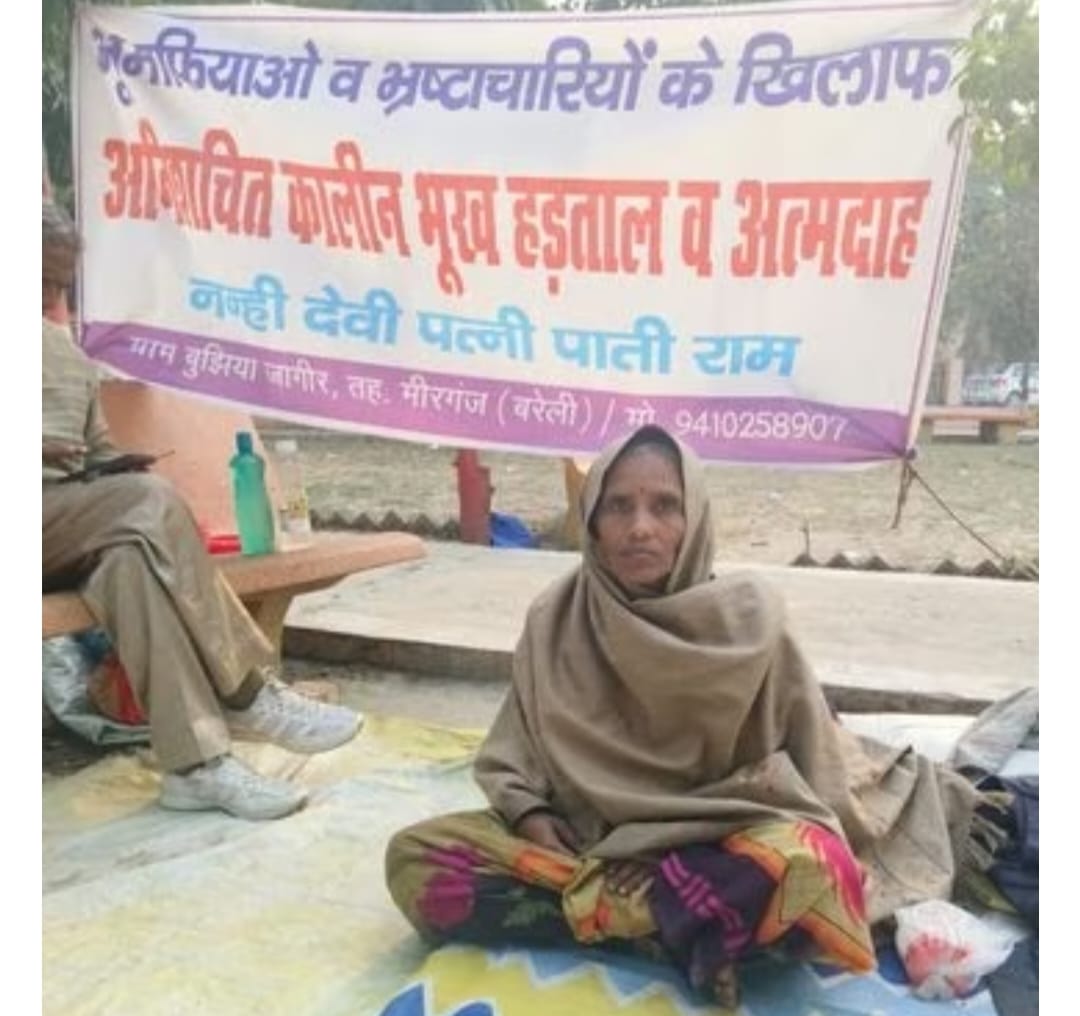 एक माह से भूख हड़ताल पर बैठी भूमाफियाओं और भ्रष्टाचार की पीड़ित विधवा जिम्मेदार कह रहे संज्ञान में नहीं मुजीब…