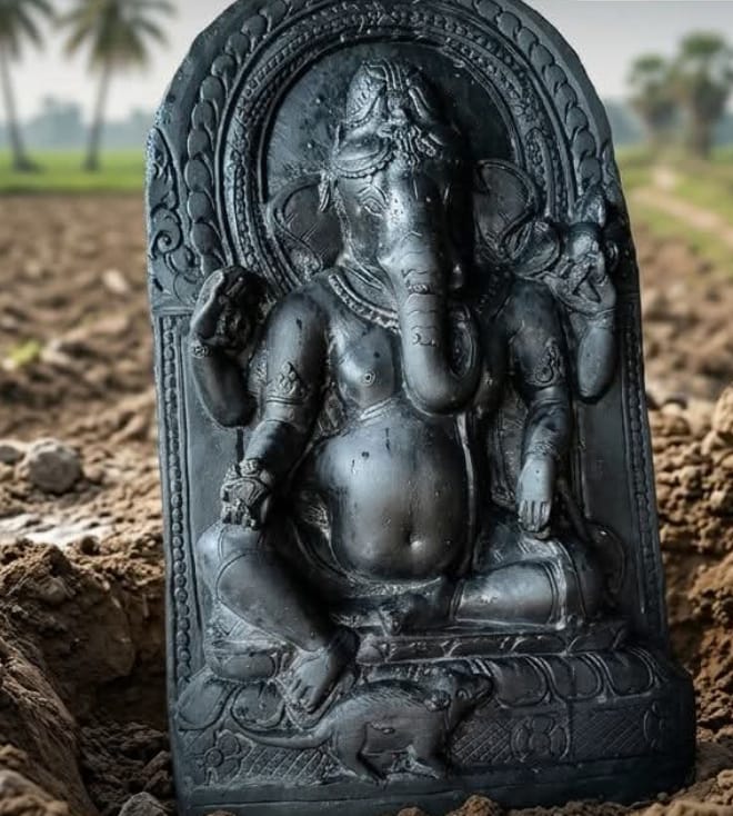 खेत में खूंटा गाड़ने के लिए की गई खुदाई में मिली प्राचीन गणेश प्रतिमा, देखने उमड़ी भीड़ मटेश्वर धाम शिवगंगा…