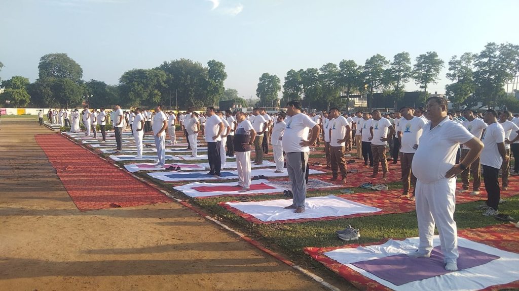 बदायूं । 11वां अंतर्राष्ट्रीय योग दिवस एक पृथ्वी एक स्वास्थ थीम पर मनाया गया। जनपद में मुख्य जनपद मुख्यालय, तहसीलों व ब्लाकों पर भी योग दिवस का सफलतापूर्वक आयोजन किया गया। वहीं पुलिस लाइन परेड ग्राउंड में 11वें अंतर्राष्ट्रीय योग दिवस का शुभारंभ जनपद की प्रभारी मंत्री गुलाब देवी ने देव धनवंतरी के चित्र के समक्ष दीप प्रजवलन व माल्यार्पण कर किया। सेल्फी पॉइंट आकर्षण का केंद्र रहा। सेल्फी पॉइंट पर जनप्रतिनिधियों, अधिकारियों व गणमान्य लोगों आदि ने सेल्फी लेकर इस क्षण को यादगार बनाया।