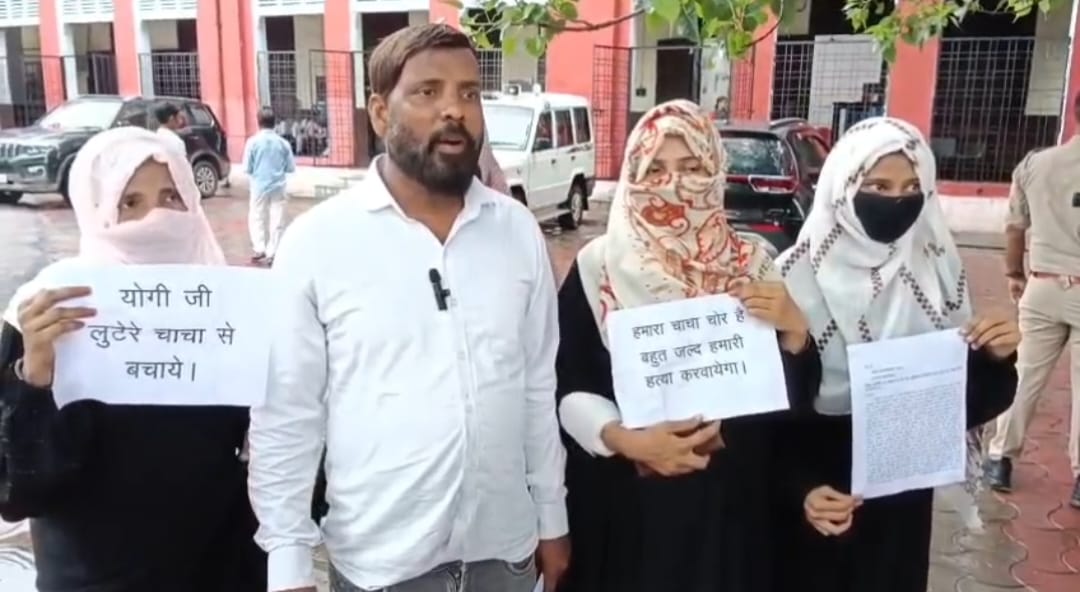पिता की जमीन पर चाचा द्वारा कब्जा करने पर भतीजियों ने किया तख्ती लेकर प्रदर्शन डीएम से लगाई न्याय की गुहार