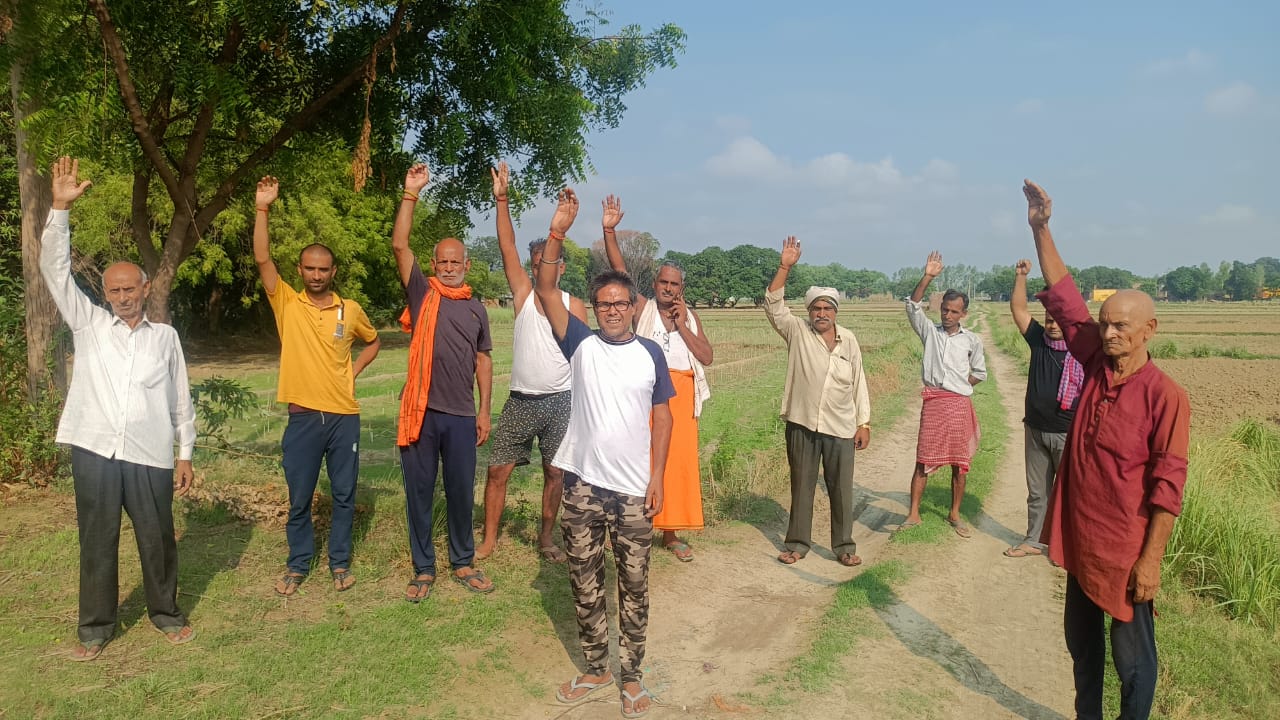 कुढ़वा गांव में सड़क न बनने के कारण ग्रामीणों द्वारा किया गया प्रदर्शन।