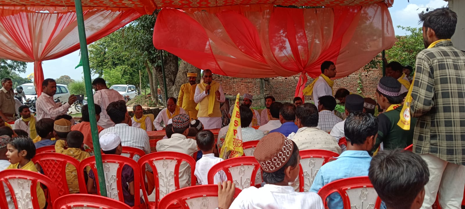 आजमगढ़ ।अहरौला विकासखंड अंतर्गत जामिया अरबिया शैदाये हक बस्ती भूजवल बाजार में आज सुभासपा सुविधान संकल्प पार्टी के राष्ट्रीय अध्यक्ष एवं उत्तर प्रदेश सरकार में पंचायती राज मंत्री ओम प्रकाश राजभर के नेतृत्व में एक विशेष चौपाल का आयोजन किया गया। इस चौपाल के माध्यम से मुस्लिम समाज को उनके संवैधानिक हक और अधिकारों की जानकारी दी गई