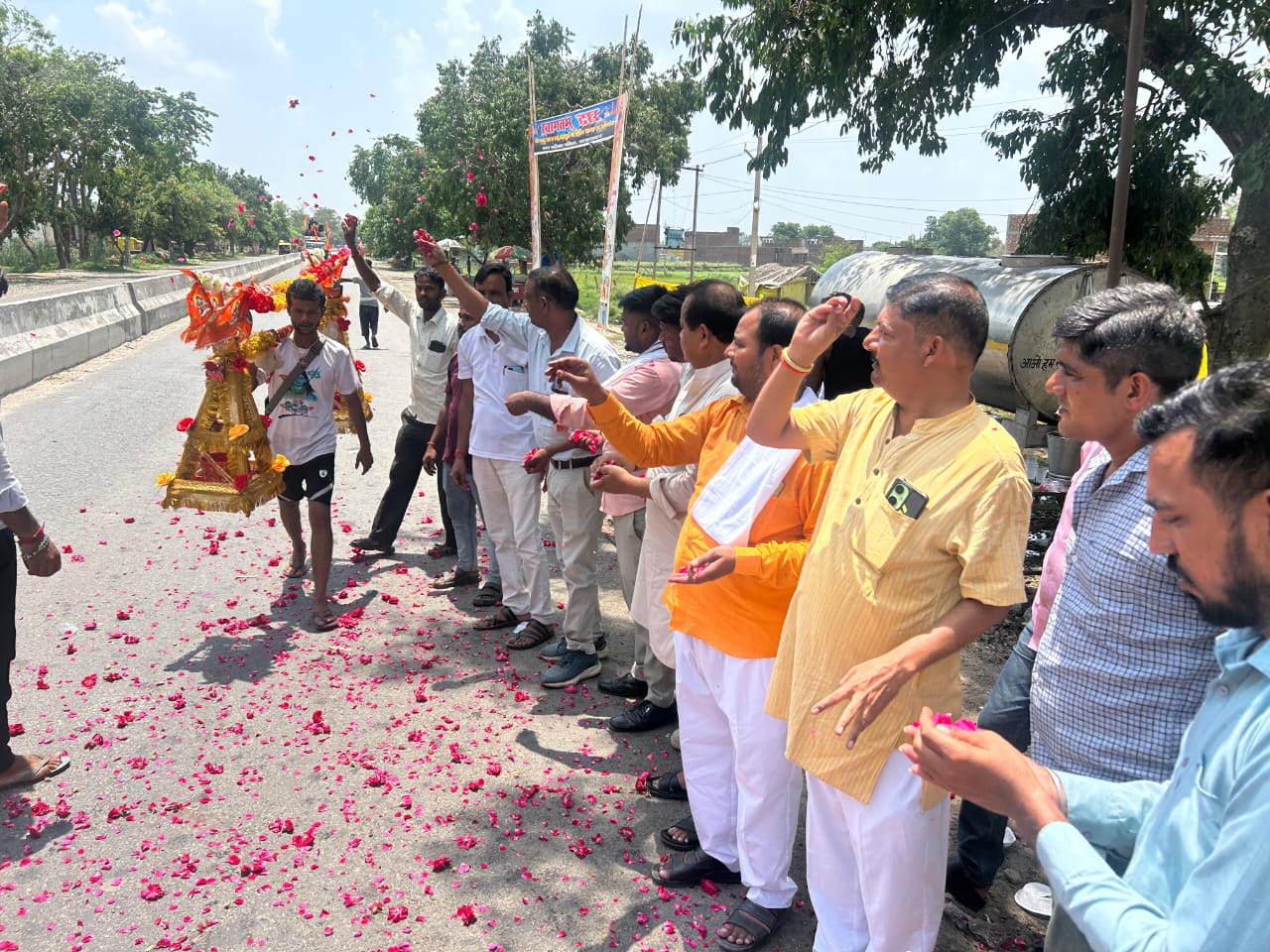 चेयरमैन शकील अहमद ने कांवड़ियों पर की पुष्पवर्षा,कराया भंडारा ।