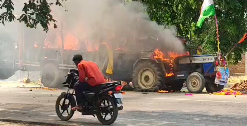 किशोर कांवड़िया की डीजे लगे ट्रैक्टर ट्राली से टक्कर हो जाने से मौके पर ही मौत ,कांवड़ियों ने ट्रैक्टर ट्राली को फूंका ।