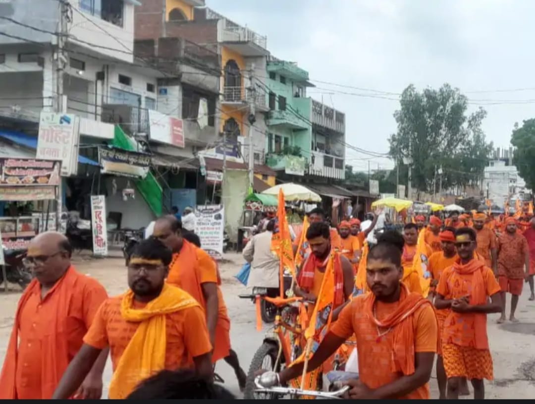 पाण्डेयपुर कामेश्वर नाथ का जलाभिषेक हेतु कांवरियों का जत्था रवाना ।