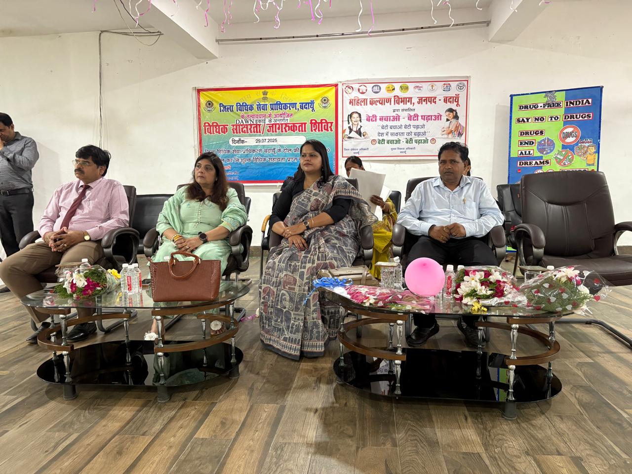 शिविर का शुभारम्भ अपर जिला एवं सत्र न्यायाधीश व सचिव, जिला विधिक सेवा प्राधिकरण, बदायूं शिव कुमारी की अध्यक्षता में मां सरस्वती के चित्र पर माल्यार्पण व दीप प्रज्जवलित किया गया। कार्यक्रम के प्रारम्भ में लवकुश प्रसाद, ड्रग इंस्पेक्टर के द्वारा ड्रग्स के बारे में एवं उससे हाने वाली समस्याओं के बारे में छात्र छात्राओं को अवगत कराया, कषिष सक्सेना, असि. एल.ए.डी.सी. जिला विधिक सेवा प्राधिकरण, बदायूं द्वारा अपने वक्तव्य में राष्ट्रीय जिला विधिक सेवा प्राधिकरण, नई दिल्ली द्वारा संचालित योजनाओं, जिला विधिक सेवा प्राधिकरण, बदायूं के द्वारा प्रदत्त निःशुल्क विधिक सेवाओं, विधिक साक्षरता व जागरूकता कैम्प के उद्देश्यों के बारे में बताया इसके अतिरिक्त उर्वशी के द्वारा भारतीय संविधान की प्रस्तावना, मौलिक अधिकारों एवं तीन नये भारतीय अपराधिक कानूनो के वारे में न्याय संहिता के कानून तथा उ0प्र0 शासन द्वारा संचालित विभिन्न टोल फ्री नं0 आदि के बारे विस्तारपूर्वक बताया।