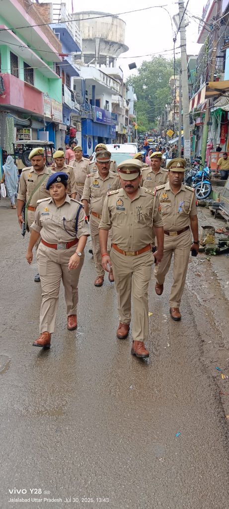 आगामी त्यौहारों के मद्देनजर कानून एवं शांति व्यवस्था को सुदृढ बनाने के लिए सार्वजनिक स्थानों/मुख्य मार्गों पर अपर पुलिस अधीक्षक ग्रामीण द्वारा थाना जलालाबाद पुलिस बल के साथ थाना क्षेत्र में आगामी त्यौहारों के मद्देनजर कानून एवं शांति व्यवस्था को सुदृढ बनाने के लिए सार्वजनिक स्थानों/मुख्य मार्गों पर पैदल गश्त की गयी।