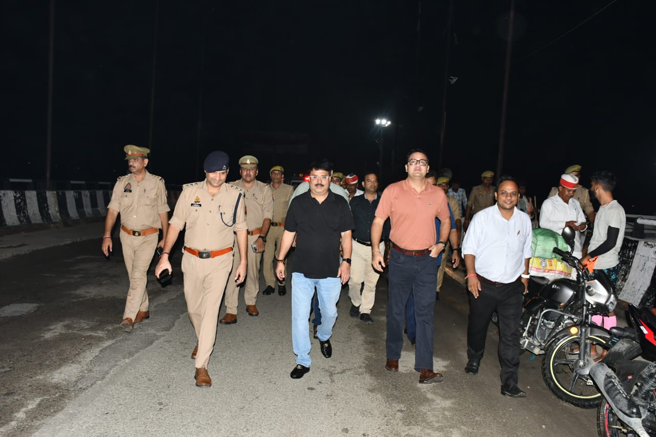 डीएम ने देर रात अधिकारियों संग किया कछला गंगा घाट का निरीक्षण।