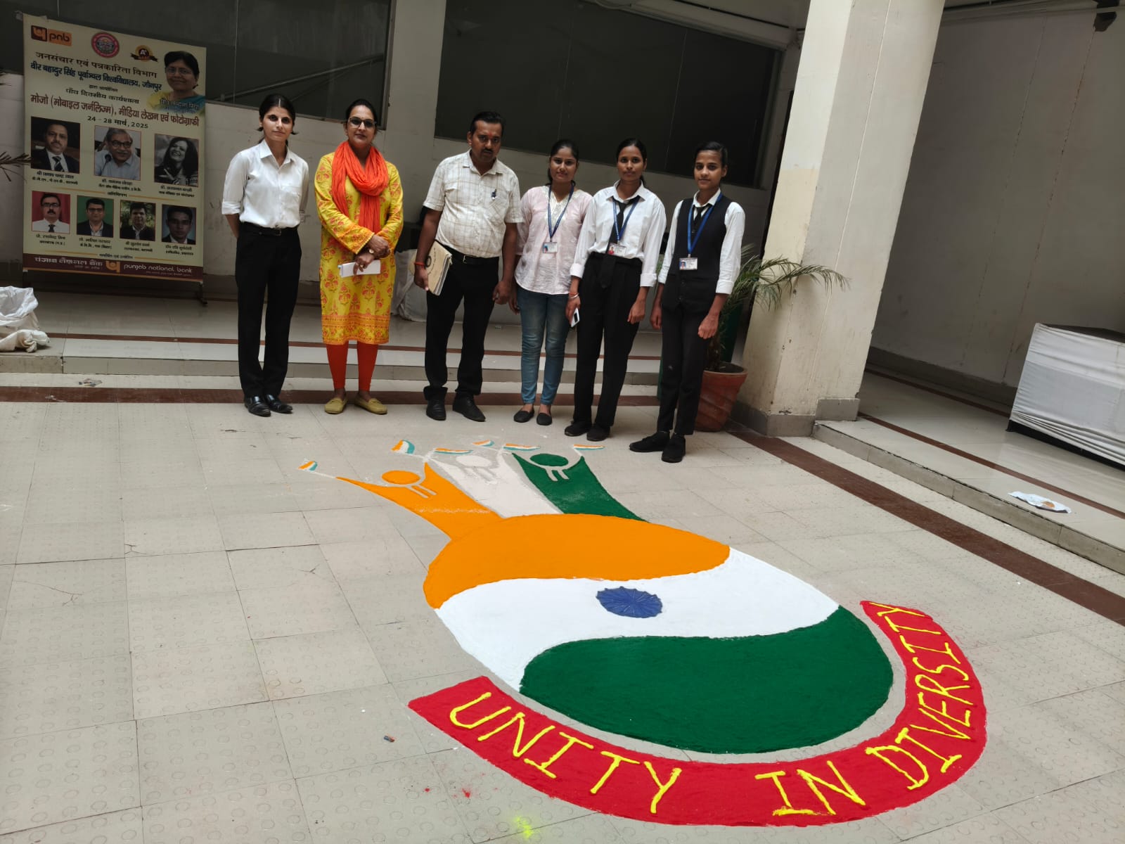 जौनपुर। राज भवन के निर्देशानुसार “हर घर तिरंगा – 2025” कार्यक्रम के अंतर्गत रज्जू भइया संस्थान, विश्वविद्यालय परिसर में एक रंगोली प्रतियोगिता का सफल आयोजन किया गया। इस प्रतियोगिता में विद्यार्थियों ने उत्साहपूर्वक भाग लिया और राष्ट्रभक्ति की भावना को रंगों के माध्यम से अभिव्यक्त किया।