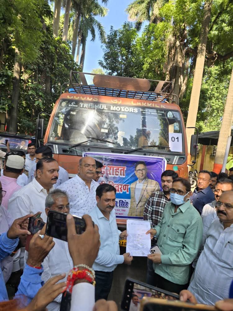आज उन्होंने बलिया सदर एवं बैरिया विधानसभा क्षेत्रों के लिए तीन-तीन ट्रक राहत सामग्री (खाद्य सामग्री, वस्त्र, बर्तन, पशुओं हेतु चारा एवं अन्य आवश्यक वस्तुएँ) रवाना कीं, ताकि संकटग्रस्त लोगों तक समय पर सहायता पहुँच सके।