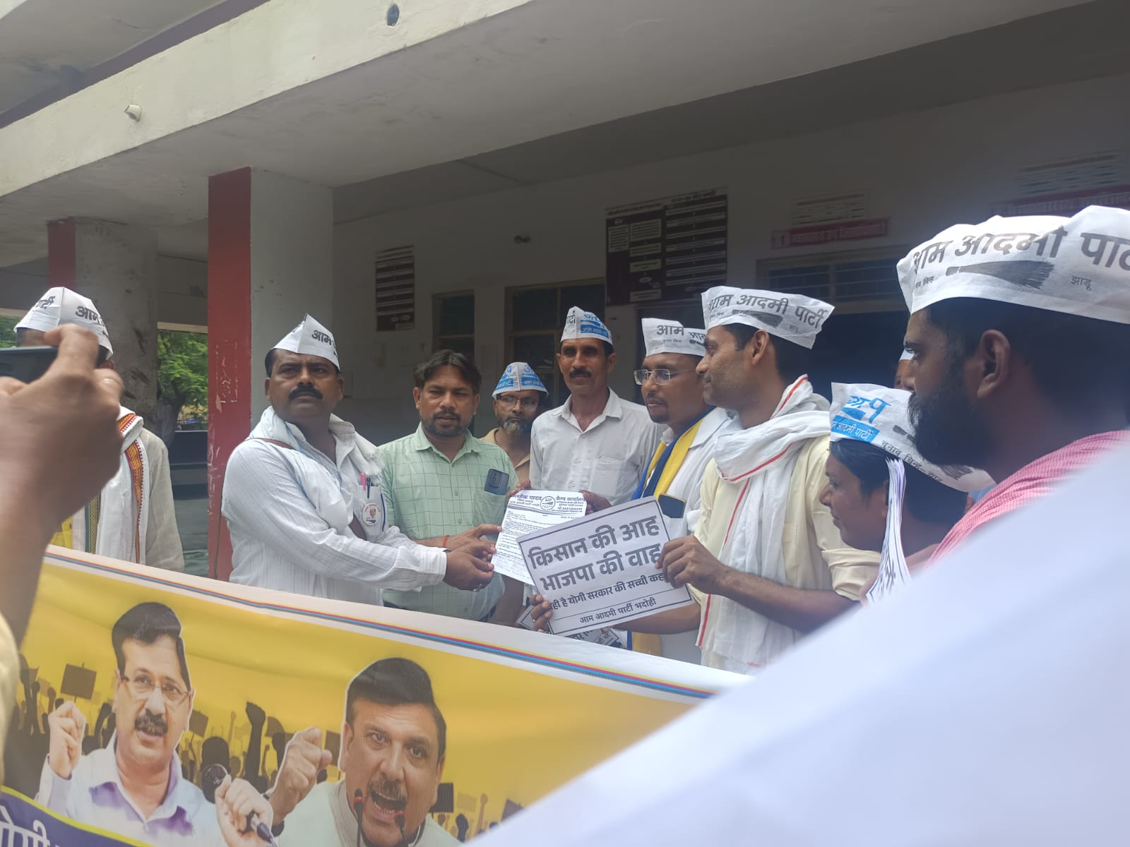 किसानों को खाद न मिल पाने के कारण आम आदमी पार्टी ने शनिवार को प्रदेश के सभी तहसीलों पर सरकार के खिलाफ विरोध प्रदर्शन किया जिसमें बड़ी संख्या में किसान शामिल हुए ।