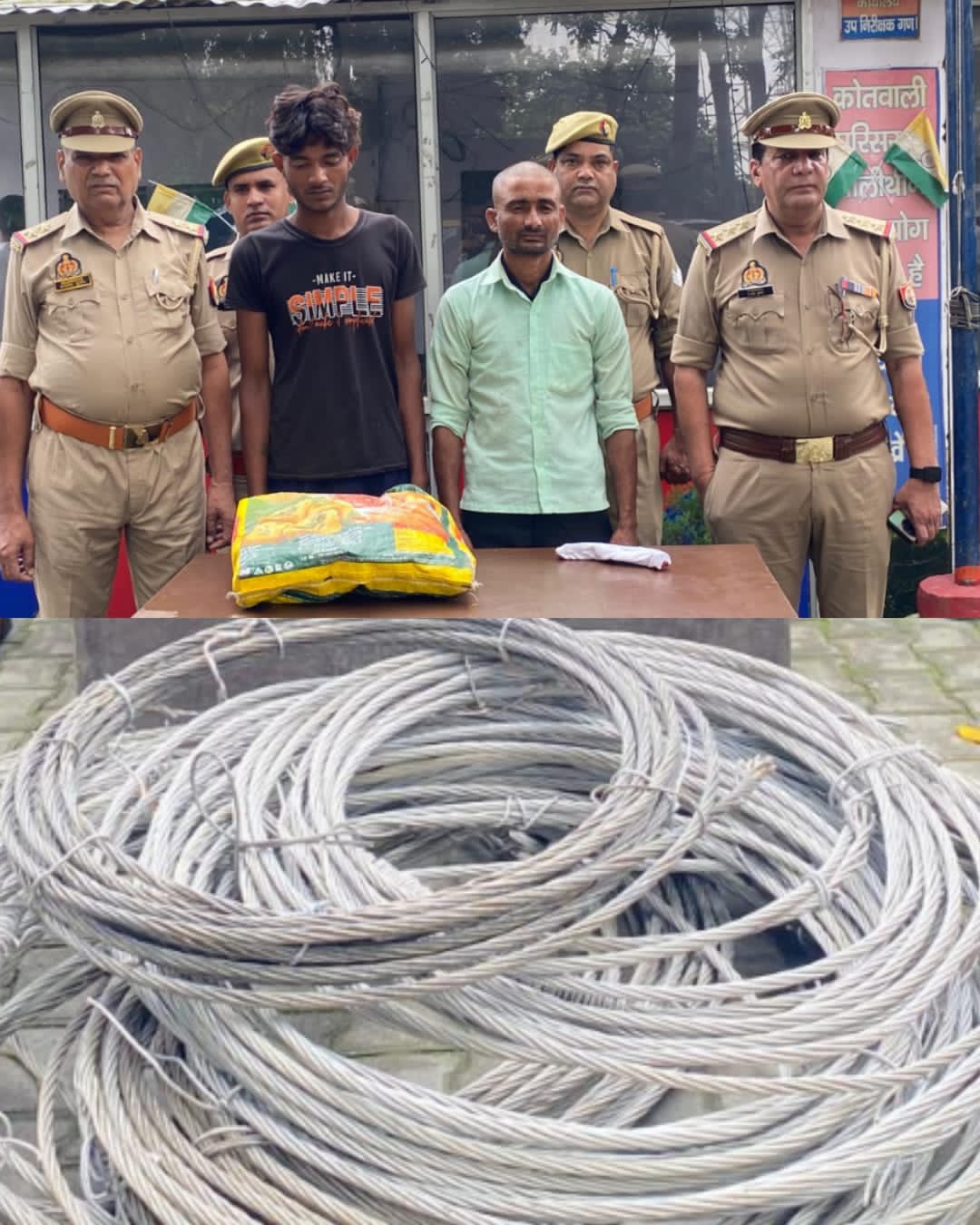 दो क्विंटल चोरी के विद्युत तार के साथ दो गिरफ्तार बताया पहले विद्युत विभाग में था संविदा कर्मचारी
