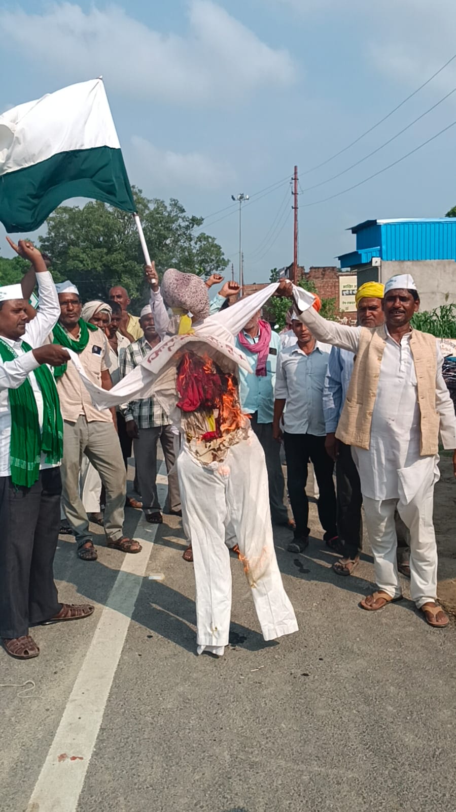 लोक निर्माण विभाग का आक्रोशित किसानों ने फूंका पुतला, मुर्दाबाद के लगाए नारे।