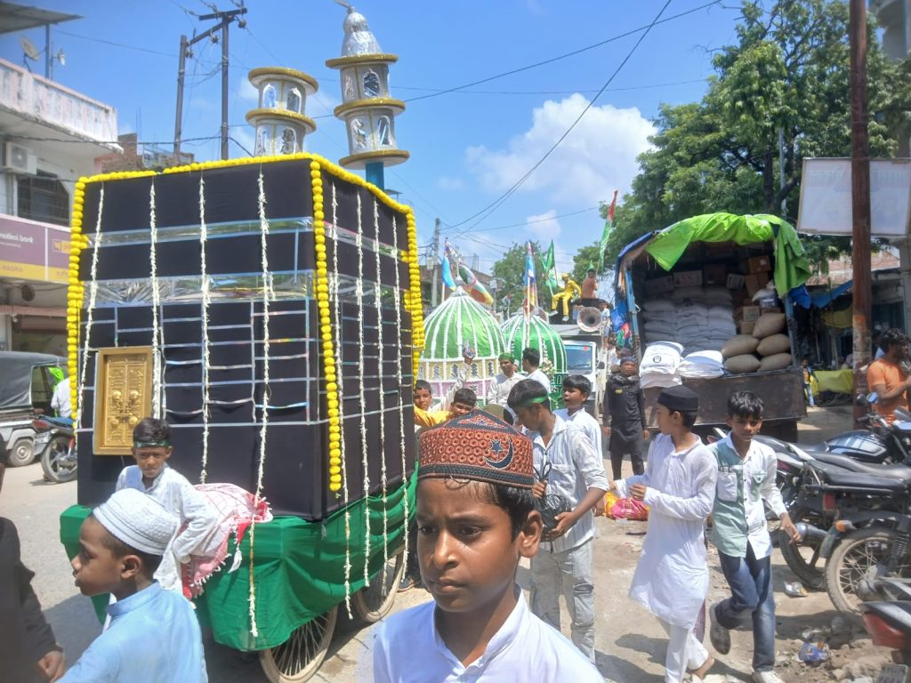 जुलूस का शुभारंभ रोशन शाह दाता की मजार से हुआ, जो परंपरागत मार्गों से होते हुए मक्का जामा मस्जिद पर जाकर संपन्न हुआ। पूरे रास्ते जुलूस का नजारा देखने लायक था। ढोल-नगाड़ों की गूंज, रोशनियों से जगमगाते रथ और झांकियों की भव्यता ने लोगों को मंत्रमुग्ध कर दिया। थानाध्यक्ष अजय कुमार त्रिपाठी ने स्वयं मौजूद रहकर जुलूस को हरी झंडी दिखाकर रवाना किया। इस दौरान पुलिस बल के जवान लगातार मुस्तैद नजर आए और सुरक्षा के पुख्ता इंतजाम किए गए।