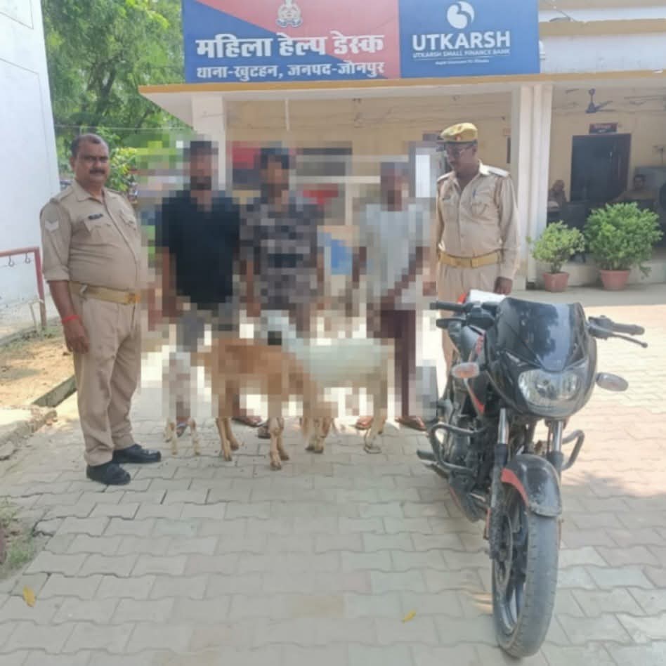 गिरफ्तार आरोपियों में राशिद उर्फ पुट्टू निवासी शेख अशरफपुर, साहिल कुरैशी निवासी शेखपुर अशरफपुर (दोनों थाना खुटहन) और रेहान उर्फ मोटू निवासी पोटरिया (थाना सरायख्वाजा, हाल पता शाहगंज) शामिल हैं। पूछताछ में आरोपियों ने 4/5 सितंबर की रात लवायन गांव से दो बकरियां और एक बकरा चोरी करने की बात कबूल की। एक बकरा जलालपुर, अंबेडकर नगर से चोरी किया गया था।
