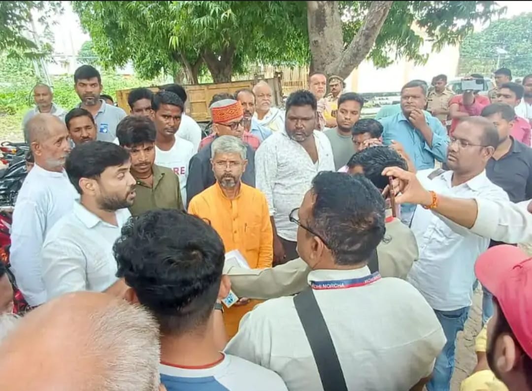 विहिप ने दिया अवर अभियंता के विरुद्ध सांकेतिक धरना ,एसडीओ द्वारा कार्रवाई के आश्वासन पर धरना स्थगित ।