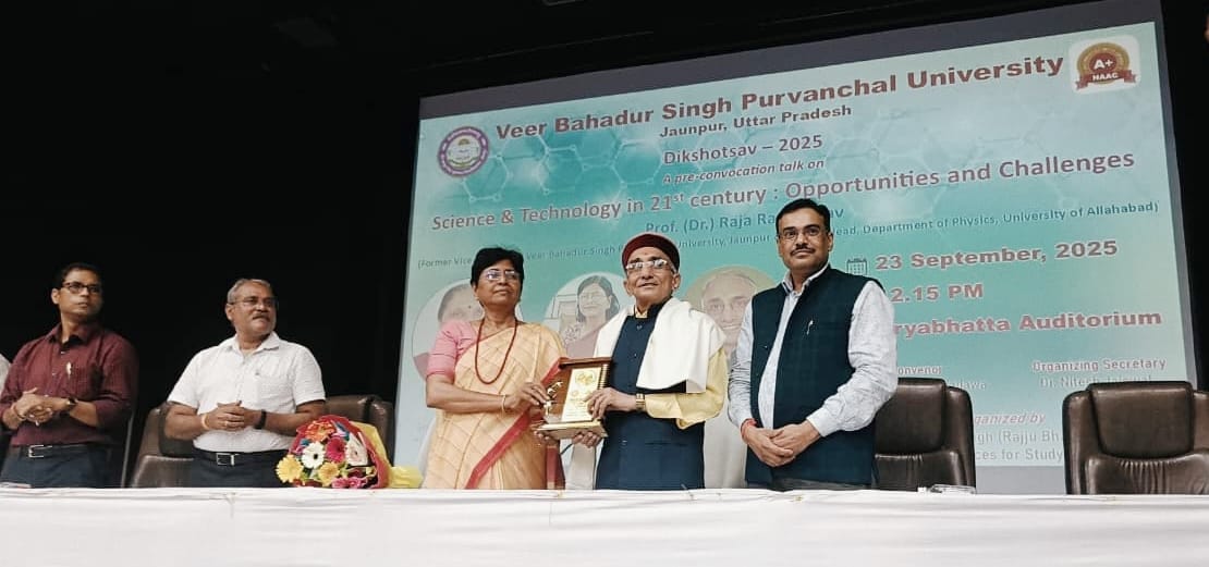 जौनपुर। वीर बहादुर सिंह पूर्वांचल विश्वविद्यालय परिसर स्थित प्रो. राजेंद्र सिंह (रज्जू भैया) भौतिकीय विज्ञान अध्ययन एवं शोध संस्थान में दीक्षोत्सव के अंतर्गत 21वीं सदीं में विज्ञान एवं तकनीकी: संभावनाएं एवं चुनौतियां विषय पर व्याख्यान आयोजित किया जाएगा।