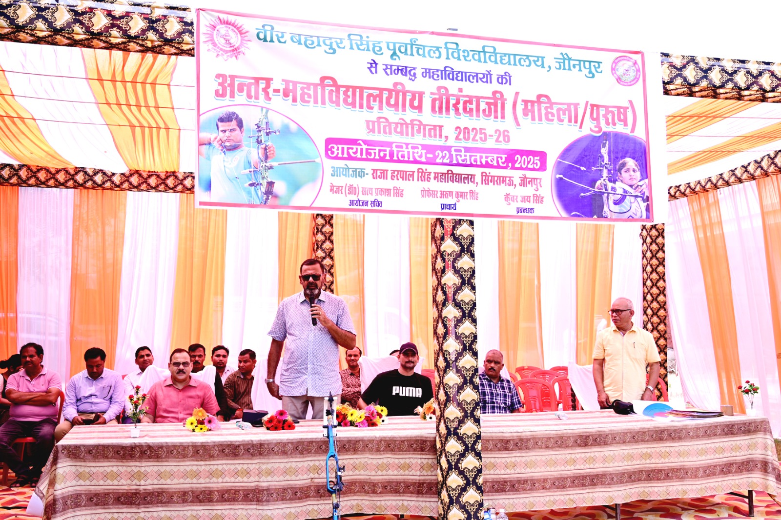 जौनपुर/सिंगरामऊ। राजा हरपाल सिंह महाविद्यालय में सोमवार 22 सितम्बर को अंतरमहाविद्यालयीय पुरुष एवं महिला तीरंदाजी प्रतियोगिता का भव्य आयोजन किया गया, जिसमें वीर बहादुर सिंह पूर्वांचल विश्वविद्यालय से संबद्ध विभिन्न महाविद्यालयों के लगभग 30 छात्र-छात्राओं ने प्रतिभाग किया। प्रतियोगिता का शुभारम्भ महाविद्यालय के प्रबंधक कुंवर जय सिंह और प्राचार्य प्रो. अरुण कुमार सिंह ने तीर चलाकर किया। क्रीड़ाधिकारी मेजर सत्य प्रकाश सिंह ने बताया कि यह प्रतियोगिता विभिन्न वर्गों में आयोजित की गई। परिणामों के अनुसार कम्पाउण्ड राउंड के पुरुष वर्ग में संत लखन दास नागा बाबा महाविद्यालय मरदह गाजीपुर के राघवेन्द्र कुमार सिंह प्रथम, राज किशोर सिंह महाविद्यालय जमानिया गाजीपुर के विकास सिंह द्वितीय तथा रामकृष्ण महाविद्यालय गाजीपुर के ज्योति प्रकाश रेड्डी तृतीय स्थान पर रहे।