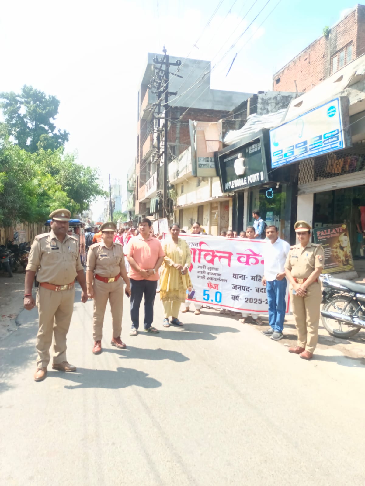 बदायूँ।उत्तर प्रदेश शासन द्वारा महिलाओं/बालिकाओं के सुरक्षार्थ व स्वालंबन हेतु चलाये जा रहे मिशन शक्ति अभियान (फेज-5.0) के तहत वरिष्ठ पुलिस अधीक्षक,बदायूँ डॉ0 बृजेश कुमार सिंह के निर्देशन में आज प्रभारी निरीक्षक महिला थाना व प्रभारी निरीक्षक थाना कोतवाली द्वारा राजकीय महाविद्यालय,बदायूँ कॉलेज के छात्राओं के साथ शहर में रैली निकालकर मिशन शक्ति पांचवा चरण अभियान के उद्देश्यों के संबंध में विभिन्न हेल्पलाइन नं0/साइबर अपराध के बारे में जागरुक किया गया ।