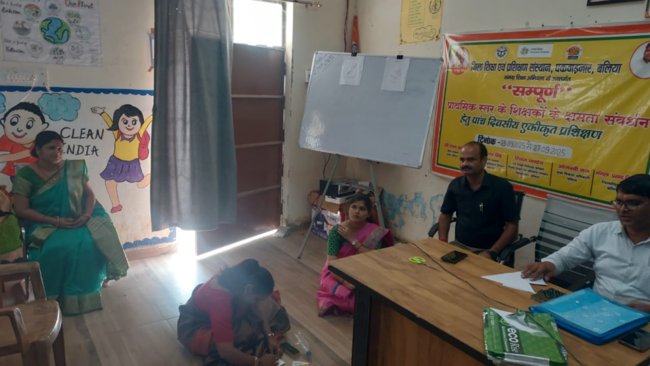 इसलिए शिक्षकों की जिम्मेदारी है कि वे पारंपरिक शिक्षण विधियों को नई तकनीकों, सूचना-संचार माध्यमों और रचनात्मक गतिविधियों से जोड़कर बच्चों के लिए शिक्षा को बोझ नहीं, बल्कि एक आनंदमय अनुभव बनाएं।शामिल रहे विभिन्न महत्वपूर्ण विषयआठवें बैच के इस प्रशिक्षण में लगभग 1500 शिक्षकों को गणित और भाषा शिक्षण, पर्यावरण अध्ययन, नैतिक शिक्षा, जीवन कौशल, अनुभवात्मक शिक्षण, आकलन, कला एवं संगीत, क्राफ्ट, समावेशी शिक्षा, नेतृत्व क्षमता का विकास, खेल एवं स्वास्थ्य, सुरक्षा आदि महत्वपूर्ण विषयों से अवगत कराया गया।प्रशिक्षकों के प्रेरणादायी सत्रप्रशिक्षण प्रभारी रवि रंजन खरे ने विद्यालय में प्रतिदिन समय पर प्रार्थना सभा आयोजित कर उसे उत्सव के रूप में संपन्न करने पर बल दिया।डाइट प्रवक्ता जानू राम ने रोचक कहानियों और गतिविधियों से शिक्षकों को नए दृष्टिकोण से अवगत कराया।डॉ. अशफाक ने सीपीआर तकनीक सिखाकर इसे जीवन रक्षा हेतु अनिवार्य बताया।सड़क सुरक्षा संबंधी सुझाव राम प्रकाश ने दिए।मनोविज्ञान प्रवक्ता देवेंद्र सिंह ने बच्चों का मनोवैज्ञानिक विश्लेषण करने की विधियां समझाईं।प्रवक्ता राम यश योगी ने सामाजिक एवं पर्यावरणीय अध्ययन पर प्रकाश डाला।कार्यक्रम प्रभारी डॉ. मृत्युंजय सिंह ने अनुशासन के मूल्यों पर बल देते हुए सभी को धन्यवाद ज्ञापित किया।सांस्कृतिक प्रस्तुतियां और संदेशप्रशिक्षण के अंतिम दिन शिक्षकों द्वारा प्रेरणा गीत, अभियान गीत और पढ़ने के महत्व पर आधारित एक लघु नाटिका प्रस्तुत की गई। इसमें अनामिका ओझा, अभय कुमार पांडे, रश्मि दुबे, अमित सिंह सहित अनेक शिक्षकों ने शिक्षा की अलख जगाने का संदेश दिया।सम्मानित हुए सक्रिय शिक्षकप्रशिक्षण में उत्कृष्ट प्रदर्शन और सक्रिय भागीदारी हेतु कई शिक्षकों को विशेष रूप से सम्मानित किया गया। इनमें प्रमुख नाम हैं:अनामिका ओझा (प्राथमिक विद्यालय रोहुआ बेलहरी)रश्मि दुबे (प्राथमिक विद्यालय नंदपुर बेलहरी)राजेश कुमार सिंह (प्रधानाध्यापक, प्राथमिक विद्यालय मेघा मठ)निशा मौर्य (कंपोजिट विद्यालय पिपरा)मोनिका शर्मा (कंपोजिट विद्यालय तिरुनाई खिदिरपुर सीयर)सुनीता यादव (प्राथमिक विद्यालय चकिया शेर)अरुण कुमार पाठक (कंपोजिट विद्यालय कटहीं बेलहरी)अमित कुमार सिंह (कंपोजिट विद्यालय मुराडीह बेलहरी)अभय कुमार पांडे (प्राथमिक विद्यालय तरवा पंदह)अर्चना कुमारी (प्राथमिक विद्यालय पहेसर)रानी चौहान (प्राथमिक विद्यालय खपतही)चंदा कुमारी चौरसिया (प्राथमिक विद्यालय सहूलाई पंदह)निधि सिंह (प्राथमिक विद्यालय सीहोरीडीह)अनामिका (प्राथमिक विद्यालय जहांगीरपुर)रंजू चौहान (प्राथमिक विद्यालय बभनौली लहसनी, नगरा)श्रीराम (प्राथमिक विद्यालय गढ़मलपुर)सहयो