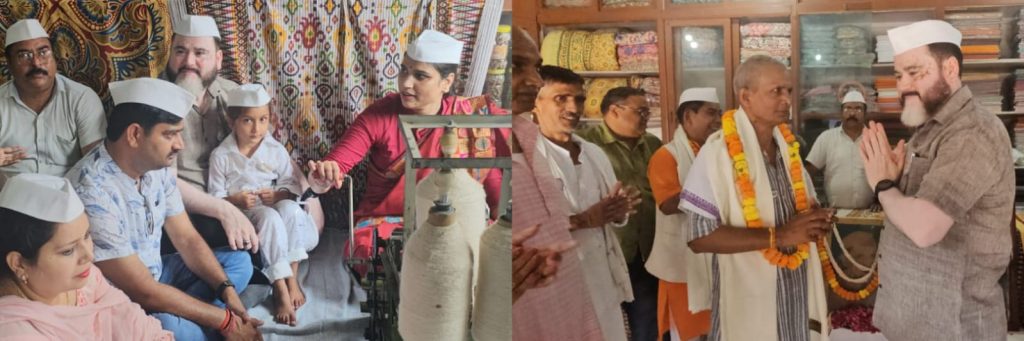 सहयोग संस्था ने गांधी आश्रम में मनाई गांधी और शास्त्री जयंती कर्मचारियों को किया सम्मानित चलाया चरखा