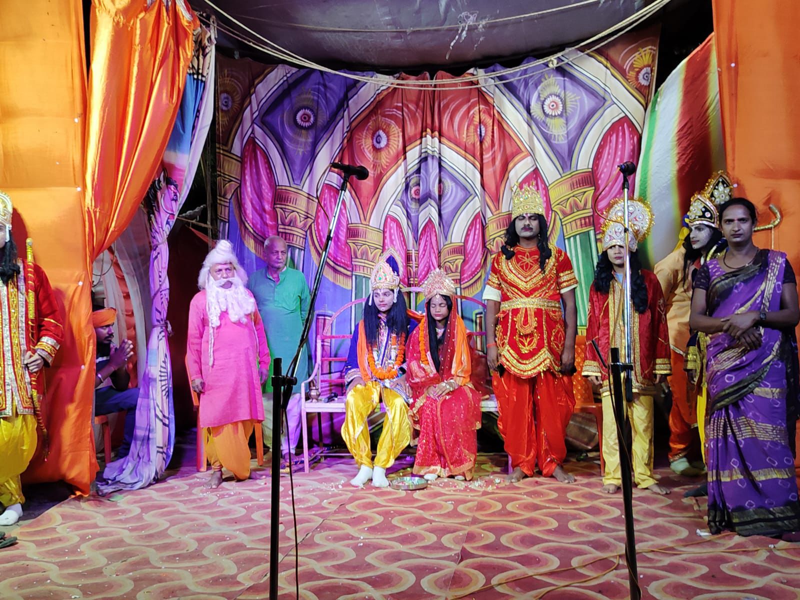 *भदोही,दुर्गागंज।* अभोली ब्लॉक के मतेथू गांव में स्थित प्राचीन हनुमान मंदिर पर जय बजरंग रामलीला समिति द्वारा आयोजित रामलीला के छठवें दिन रविवार को राम वन गमन,भरत मनावन,खर्दूषण वध और सपूर्णखा के नाक काटने का मंचन किया गया। मंचन की शुरुआत में राजा दशरथ ने मुनि वशिष्ठ से भगवान राम के राज्याभिषेक की इच्छा व्यक्त की। मुनि वशिष्ठ ने इसे उचित समय बताया, जिसके बाद महाराज दशरथ ने मंत्री सुमंत्र से पूरे राज्य में राम के राजा बनने की घोषणा करवा दी।