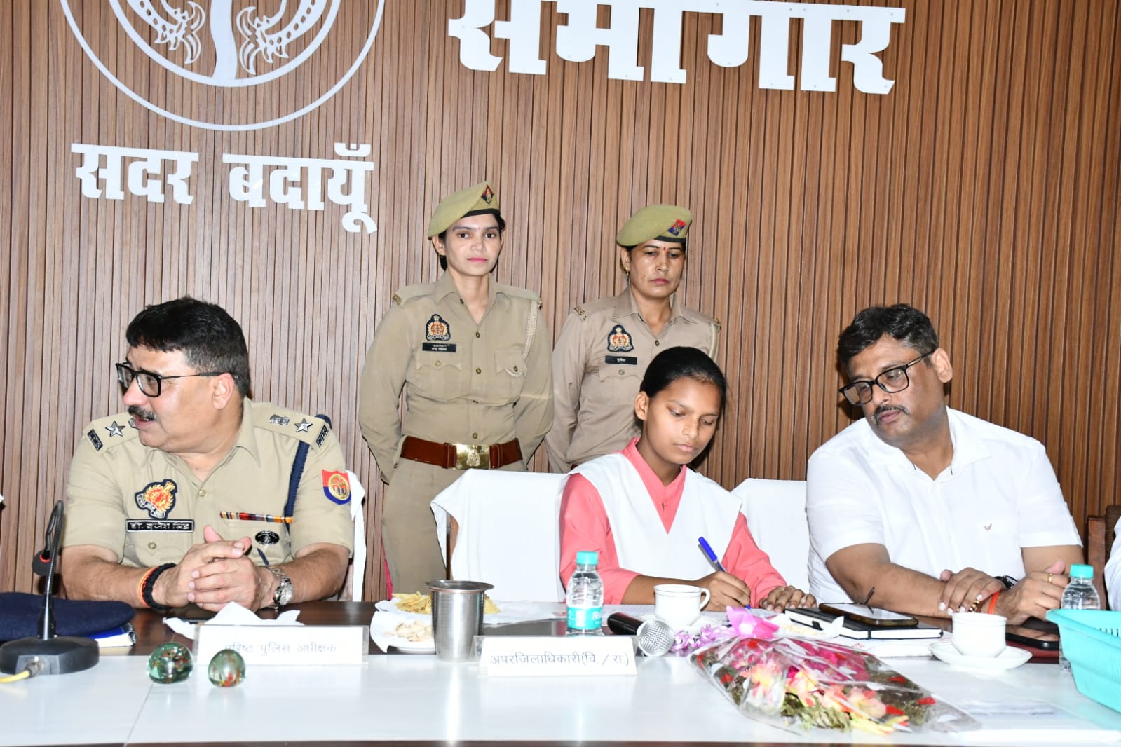 एक दिवसीय सांकेतिक जिलाधिकारी बनी छात्रा सलोनी एवं वरिष्ठ पुलिस अधीक्षक बदायूँ डॉ0 बृजेश कुमार सिंह द्वारा संयुक्त रूप से तहसील सदर, बदायूँ पर सम्पूर्ण समाधान दिवस के अवसर पर जनमानस की समस्याओं को सुनकर अधिकांशत् शिकायतों का मौके पर निस्तारण कराया गया तथा शेष शिकायतों की निष्पक्ष जाँच कर विधिक / समयबद्ध निस्तारण करने हेतु संबंधित को आवश्यक आदेश-निर्देश दिए गए ।