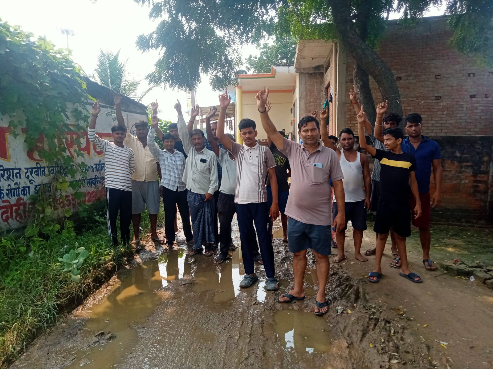 मुड़फोरवा मार्ग पर नाला न होने से जलभराव, ग्रामीणों ने किया प्रदर्शन।