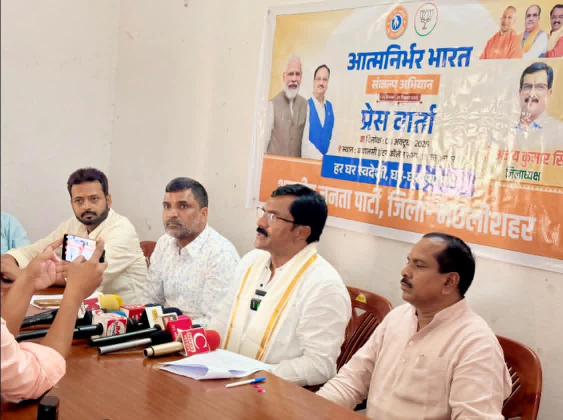 जौनपुर /जलालपुर ।भारतीय जनता पार्टी जिला मछलीशहर ने बयालसी इंटर कॉलेज सभागार में आयोजित प्रेस वार्ता के माध्यम से 25 सितंबर से 25 दिसंबर 2025 तक चलने वाले आत्मनिर्भर भारत संकल्प अभियान की आधिकारिक जानकारी दी। अभियान का उद्देश्य “हर घर स्वदेशी, घर-घर स्वदेशी” के संकल्प को जन-आंदोलन बनाकर “वोकल फॉर लोकल” को नई दिशा देना है। जिलाध्यक्ष डॉ. अजय कुमार सिंह ने कहा कि प्रधानमंत्री नरेंद्र मोदी के विकसित भारत 2047 के लक्ष्य की प्राप्ति में यह अभियान मील का पत्थर साबित होगा, क्योंकि इसका फोकस सामाजिक-आर्थिक आत्मनिर्भरता, स्थानीय उद्योगों के सशक्तिकरण और नागरिक सहभागिता पर केंद्रित है। उन्होंने बताया कि इस अभियान के माध्यम से हर नागरिक को आत्मनिर्भरता के संकल्प से जोड़ा जाएगा और स्वदेशी उत्पादों को अपनाने की भावना को जन-जन तक पहुँचाया जाएगा। “वोकल फॉर लोकल” के माध्यम से स्थानीय उत्पादों, कारीगरों, स्ट्रीट वेंडर्स, लघु उद्योगों और स्टार्टअप्स को बढ़ावा दिया जाएगा।
