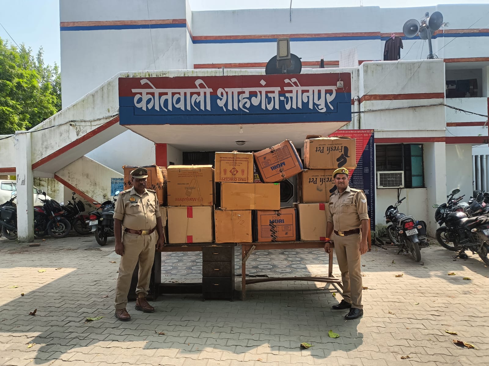 शाहगंज पुलिस ने चेकिंग के दौरान 12 कार्टून पटाखे बरामद किए