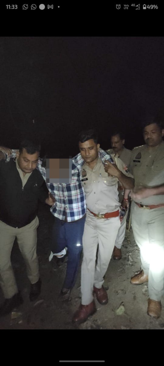 वहीं बीती रात्रि में प्रभारी निरीक्षक धनजंय सिंह थाना कादरचौक मय टीम के साथ मुकद्दमा में वांछित अभियुक्त की तलाश में मामूर थी। वहीं मुखबिर द्वारा उसैहत रोड पर ग्राम मामूरगंज के आगे 500 मी0 की दूरी पर आम के बाग में संदिग्ध व्यक्ति होने की सूचना प्राप्त हुई, पुलिस पार्टी द्वारा प्राप्त सूचना के आधार पर दबिश दी गई तो संदिग्ध व्यक्ति पुलिस को देखकर भागने लगा तथा पुलिस पार्टी पर जान से मारने की नियत से फायर किया। पुलिस पार्टी द्वारा की गई आत्मरक्षार्थ फायरिंग में अभियुक्त सत्यपाल पुत्र नन्हू सिंह निवासी ग्राम अठर्रा कुनिया थाना अलापुर जनपद बदायूँ दाहिने पैर में गोली लगने से घायल हो गया।