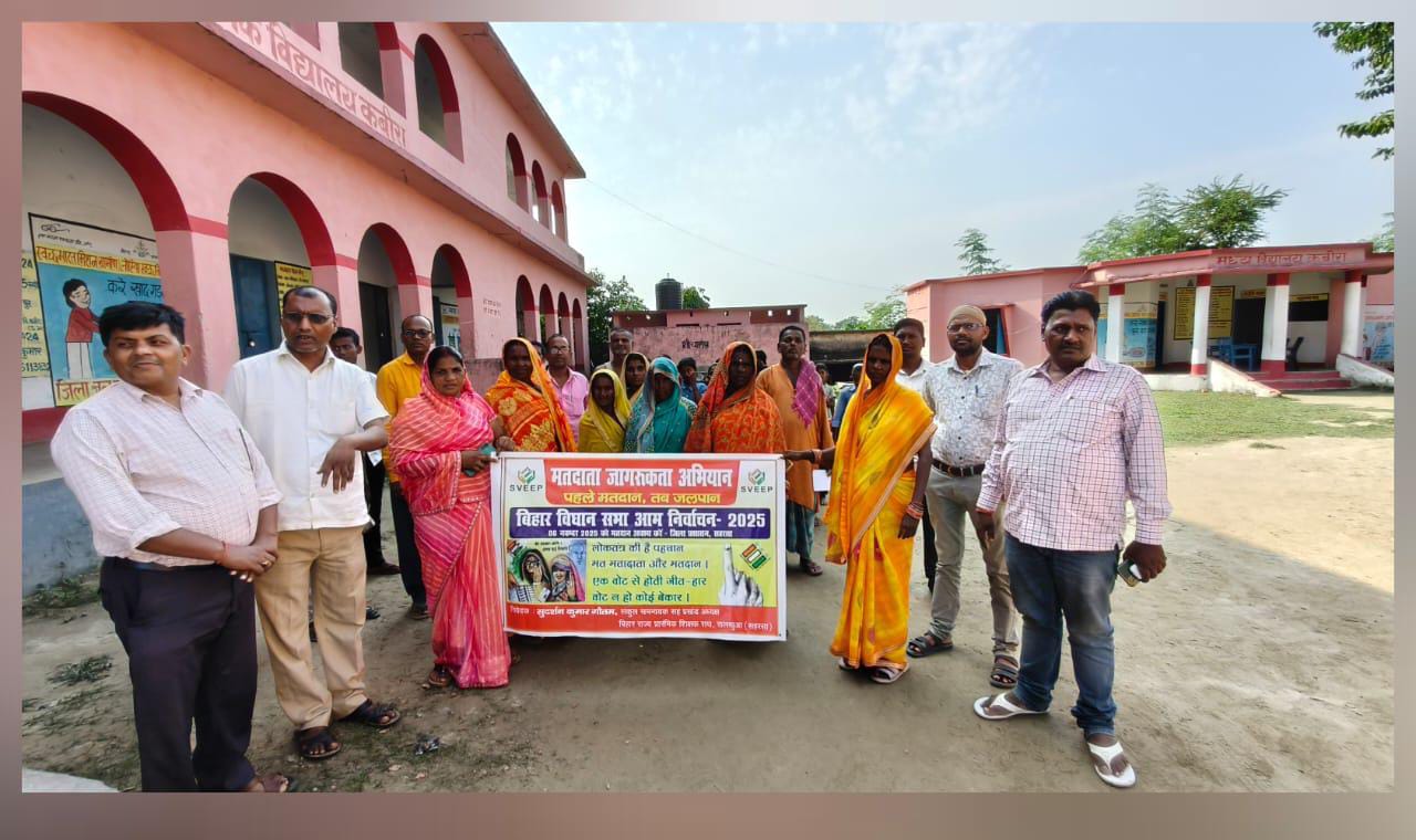 सहरसा जिले के सिमरी बख्तियारपुर विधानसभा क्षेत्र के सलखुआ प्रखंड के पूर्वी कोसी तटबंध के भीतर दियारा में बुधवार को विधानसभा चुनाव को लेकर मतदाता जागरूकता अभियान चलाया गया। जिला पदाधिकारी दीपेश कुमार के निर्देश पर संकुल समन्वयक सह प्रखंड अध्यक्ष, बिहार राज्य प्रारंभिक शिक्षक संघ सलखुआ सुदर्शन कुमार गौतम के नेतृत्व में रैली निकाली गई। रैली में बड़ी संख्या में शिक्षक–शिक्षिका, छात्र–छात्राएं और स्थानीय ग्रामीण शामिल हुए।