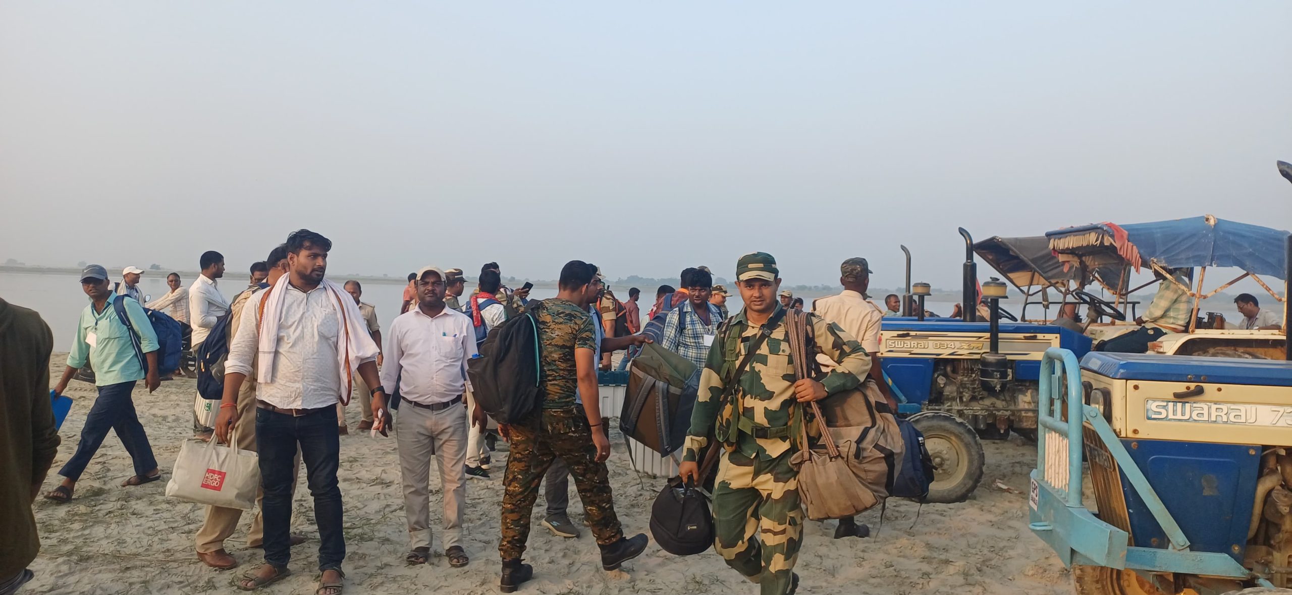 नदी पार कर मतदान केंद्रों तक पहुंचे दल, तटबंध के अंदर भेजे गए कर्मी