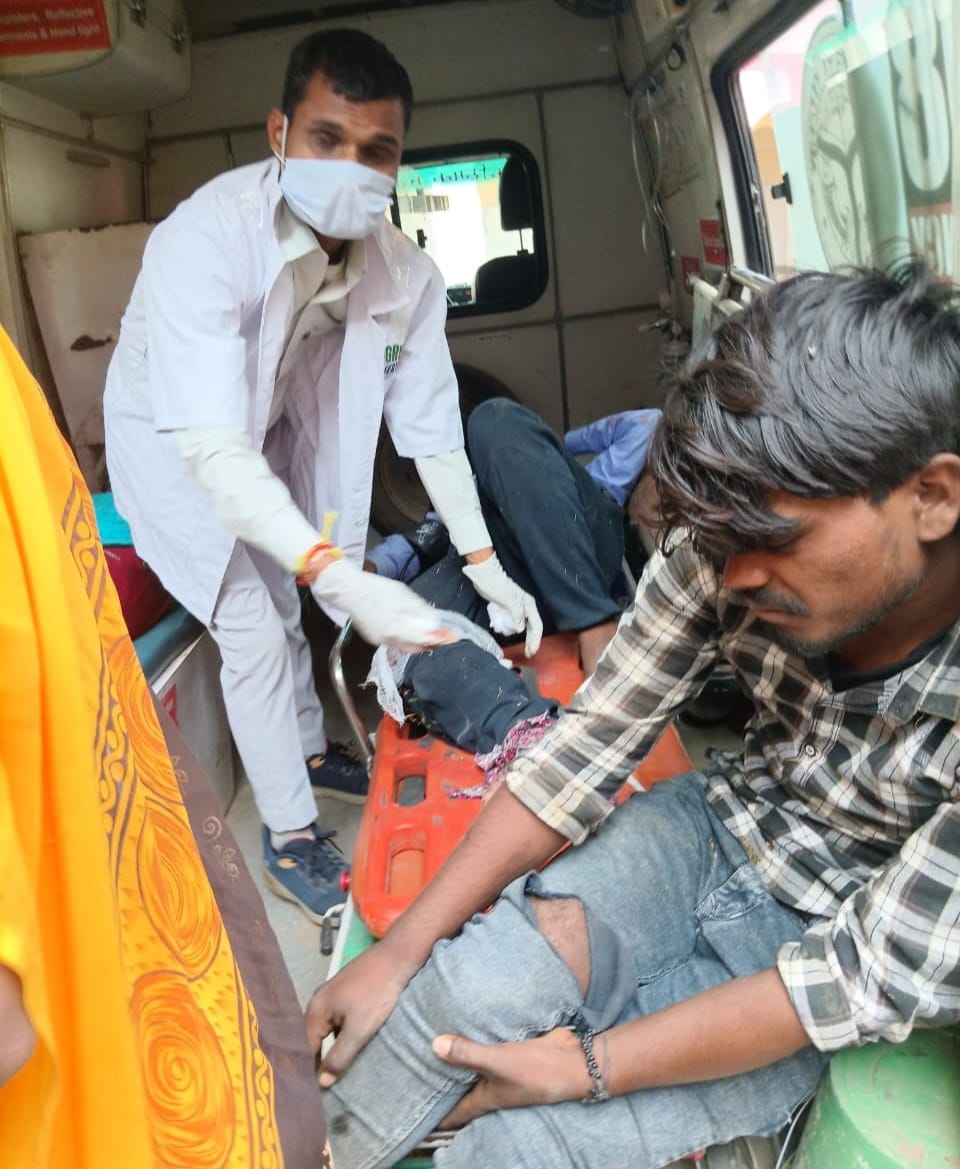 आमने-सामने दो बाइकों में जोरदार टक्कर से बाइक सवार हुए घायल घायलों को 108 एम्बुलेंस ने पहुँचाया अस्पताल।