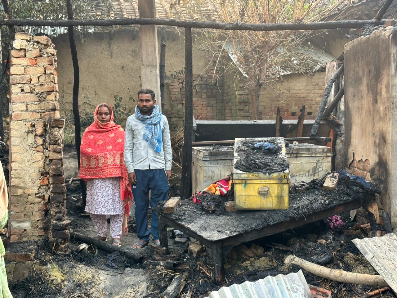 तहबरपुुुुर थाने के इब्राहिमपुर गांव निवासी मोनू पुत्र स्व0 कैलाश ईंट के दीवाल पर मंडई के ऊपर करकट रखा था। और उसी में सपरिवार गुजारा कर रहा था। शुक्रवार की शाम आवासीय मंडई जलने लगी। मंडई में आग देख गांव के लोग जुट गए और बड़ी मशक्कत के बाद किसी तरह आग को बुझाया । आवासीय मंडई में रखा अनाज विस्तर चारपाई कपड़ा बकसा सहित सारा समान जलकर खाक हो गया। शरीर के कपड़े को छोड़कर सब जलकर नष्ट हो गया। आग कैसे लगी स्पष्ट नहीं हो पाया। बहुजन समाज पार्टी विधान सभा सचिव बाबू राम ने पीड़ित परिवार को सांत्वना दी और शासन प्रशासन से अहेतुक सहायता की मांग की।