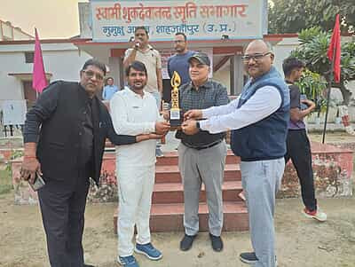 स्वामी शुकदेवानंद कॉलेज में चल रही मुमुक्षु क्रिकेट लीग में तीसरे दिन खेल का रोमांच चरम पर रहा। दिलचस्प बात यह थी कि तीसरा मैच कॉलेज की ही दो टीमों साइंस-11 तथा आर्ट-11 के मध्य खेला गया। कड़े मुकाबले ने दर्शकों की धड़कनें मानो थाम कर रख दीं। मैच का टॉस आर्ट-11 टीम ने जीतकर पहले बल्लेबाजी का फैसला किया। मैच के दौरान दोनों टीमों के मध्य कड़ा मुकाबला देखने को मिला। आर्ट-11 टीम ने 16 ओवर में 4 विकेट के नुकसान पर 214 रनों का एक विशाल स्कोर खड़ा कर दिया। दबाव में आई साइंस-11 की टीम ने भी जवाबी पारी में कड़ी मशक्कत करते हुए बेहतरीन तकनीक व खेल प्रबंधन का परिचय दिया, लेकिन यह टीम 7 विकेट के नुकसान पर महज 190 रन ही बना सकी। लिहाजा जीत का दर्जा आर्ट-11 के नाम रहा। खेल के दौरान शिवओम शर्मा कमेंटेटर की भूमिका में रहे। मैच के दौरान चौकों छक्कों की बरसात करते हुए जहां आर्ट-11 के कप्तान प्रो अजीत सिंह चारग ने अर्धशतक जड़ा, वहीं साइंस-11 से डॉ अंकित अवस्थी ने पूर्णशतक बनाकर दर्शकों की वाहवाहियां लूटीं। 35 गेंदों पर 90 रन स्कोर करते हुए बेहतरीन प्रदर्शन करने वाले डॉ मृदुल पटेल को मैन ऑफ द मैच का खिताब दिया गया। इस मौके पर खिलाड़ियों की हौसलाअफजाई हेतु कॉलेज प्रबंध समिति के सचिव डॉ अवनीश मिश्र, प्रो आलोक मिश्र, डॉ आदर्श पांडेय, प्रो आदित्य कुमार सिंह, प्रो पूनम, डॉ बरखा सक्सेना, डॉ रामशंकर पांडेय, डॉ राजनंदन सिंह राजपूत, डॉ राजीव कुमार, डॉ रामनिवास गुप्ता, डॉ अभिजीत मिश्र, डॉ मनोज अग्रवाल, रचना शुक्ला, व्याख्या सक्सेना, रश्मि राठौर, चंद्रभान त्रिपाठी आदि उपस्थित रहे।