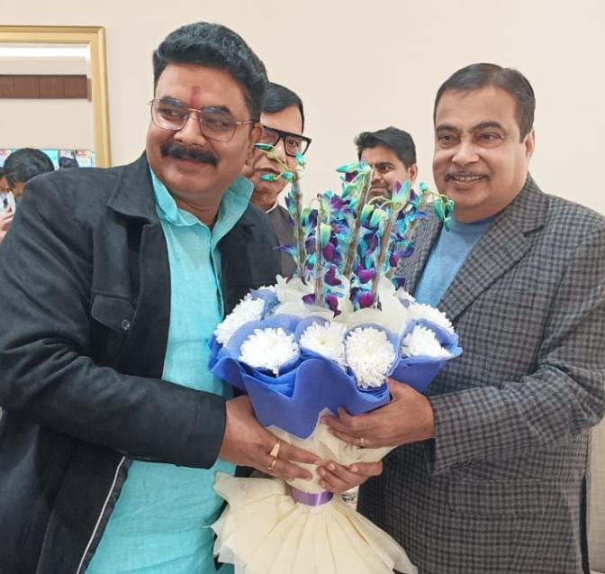 केंद्रीय मंत्री नितिन गडकरी से विधायक रमेश मिश्र ने दिल्ली में की मुलाकात ।