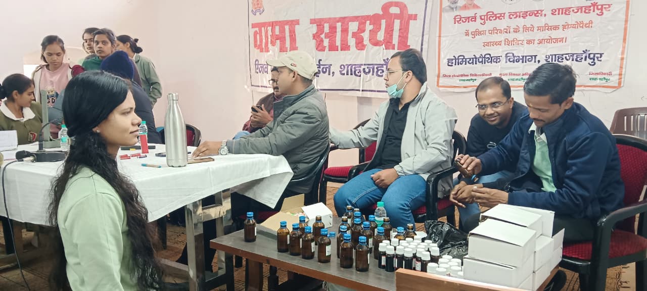 जनपद के पुलिस अधीक्षक के निर्देशन एवं अपर पुलिस अधीक्षक ग्रामीण के नेतृत्व में आज प्रातः 09:00 बजे से 1 बजे तक पुलिस लाइन, शाहजहांपुर में वामा वेलनेस कैम्प के अन्तर्गत निःशुल्क होम्योपैथिक चिकित्सा परामर्श एवं दवा वितरण शिविर का भव्य आयोजन किया गया। इस शिविर का उद्देश्य पुलिस अधिकारियों/कर्मचारियों एवं उनके परिवारजनों के स्वास्थ्य का संरक्षण तथा शीत ऋतु में प्रचलित मौसमी बीमारियों से बचाव एवं उपचार सुनिश्चित करना था।