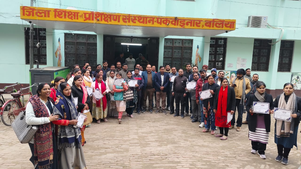 संजीव सिंह बलिया।बदलते शैक्षिक परिदृश्य में यह विश्वास निहित है कि बच्चे अपने ज्ञान का निर्माण स्वयं करते हैं एवं बच्चों को अपने ज्ञान पर चिंतन करने और दैनिक जीवन में उपयोग हेतु प्रोत्साहित करने की आवश्यकता होती है ।इस हेतु शिक्षकों को बच्चों को समझने की आवश्यकता है जिससे सीखना उनके लिए बोझ न होकर आनंददायक और रोचक अनुभव हो सके, जो शिक्षकों के साथ-साथ विद्यार्थियों के समग्र विकास में सहयोगी हो। इन्हीं आवश्यकताओं के दृष्टिगत राज्य शैक्षिक अनुसंधान एवं प्रशिक्षण परिषद उत्तर प्रदेश द्वारा प्राथमिक विद्यालयों में अध्यापन कर रहे शिक्षकों के क्षमता संवर्धन की दृष्टि से महत्वपूर्ण विषयों एवं बिंदुओं के प्रभावकारी संकलन का एक नवीन प्रयास किए जाने हेतु एकीकृत संपूर्ण प्रशिक्षण का आयोजन सुनिश्चित किया जा रहा है। इस प्रशिक्षण के प्रथम चक्र में जिला शिक्षा एवं प्रशिक्षण संस्थान पकवाइनार बलिया पर विगत जुलाई माह 2025 से संचालित एकीकृत संपूर्ण प्रशिक्षण का समापन डाइट पर आज हर्षोल्लास के साथ हुआ। इस प्रशिक्षण के विभिन्न चरणों में प्राथमिक विद्यालय में कार्य कर रहे शिक्षकों को गणित एवं भाषा शिक्षण ,पर्यावरण शिक्षा, नैतिक शिक्षा, जीवन कौशल, अनुभवात्मक शिक्षण ,आकलन, कला एवं संगीत ,क्राफ्ट एवं पपेट्री ,समावेशी शिक्षा, नेतृत्व क्षमता संवर्धन, स्वास्थ्य के लिए खेल के योगदान आदि विषयों को समाहित करने का प्रयास किया गया है ।प्रत्येक सत्र में ऐसी गतिविधियों का समावेश किया गया जो सत्रा के उद्देश्यों की प्राप्ति के साथ-साथ शिक्षकों के माध्यम से विद्यार्थियों के व्यवहार में वांछनीय परिवर्तन लाने में उपयोगी सिद्ध हो। शिक्षकों का क्षमता संवर्धन, प्रभावी कक्षा प्रबंधन, कौशलों का विकास ,विभिन्न शैक्षिक दृष्टिकोण एवं समाज से परिचित कराना है ताकि शिक्षक स्वयं के अनुभवों और अनुभवात्मक ज्ञान को उपलब्ध संसाधनों के साथ जोड़कर बच्चों का विकास कर सकें और समाज में निर्णायक भूमिका में पदस्थापित करा सके। जनपद के विभिन्न शिक्षा क्षेत्र के प्राथमिक विद्यालयों में अध्यापन कर रहे शिक्षकों को प्रशिक्षित करते हुए उनके अंदर राष्ट्रीय शिक्षा नीति 2020 में अपेक्षित जीवन कौशलों के विकास, समावेशी एवं सुरक्षित विद्यालई वातावरण के सृजन हेतु विभिन्न प्रकार की गतिविधियों का आयोजन कर मजबूती प्रदान की गई। संस्थान के प्राचार्य/ उप शिक्षा निदेशक मनीष कुमार सिंह द्वारा सकुशल प्रशिक्षण संपन्न होने पर प्रसन्नता व्यक्त करते हुए बताया गया कि सीखना हमेशा से आनंद की अनुभूति होना चाहिए तथा विद्यार्थियों में समझ का विकास राष्ट्रीय पाठ्यचर्या की रूपरेखा के अनुरूप होना चाहिए जो इस प्रशिक्षण की नीव भी है। जिल