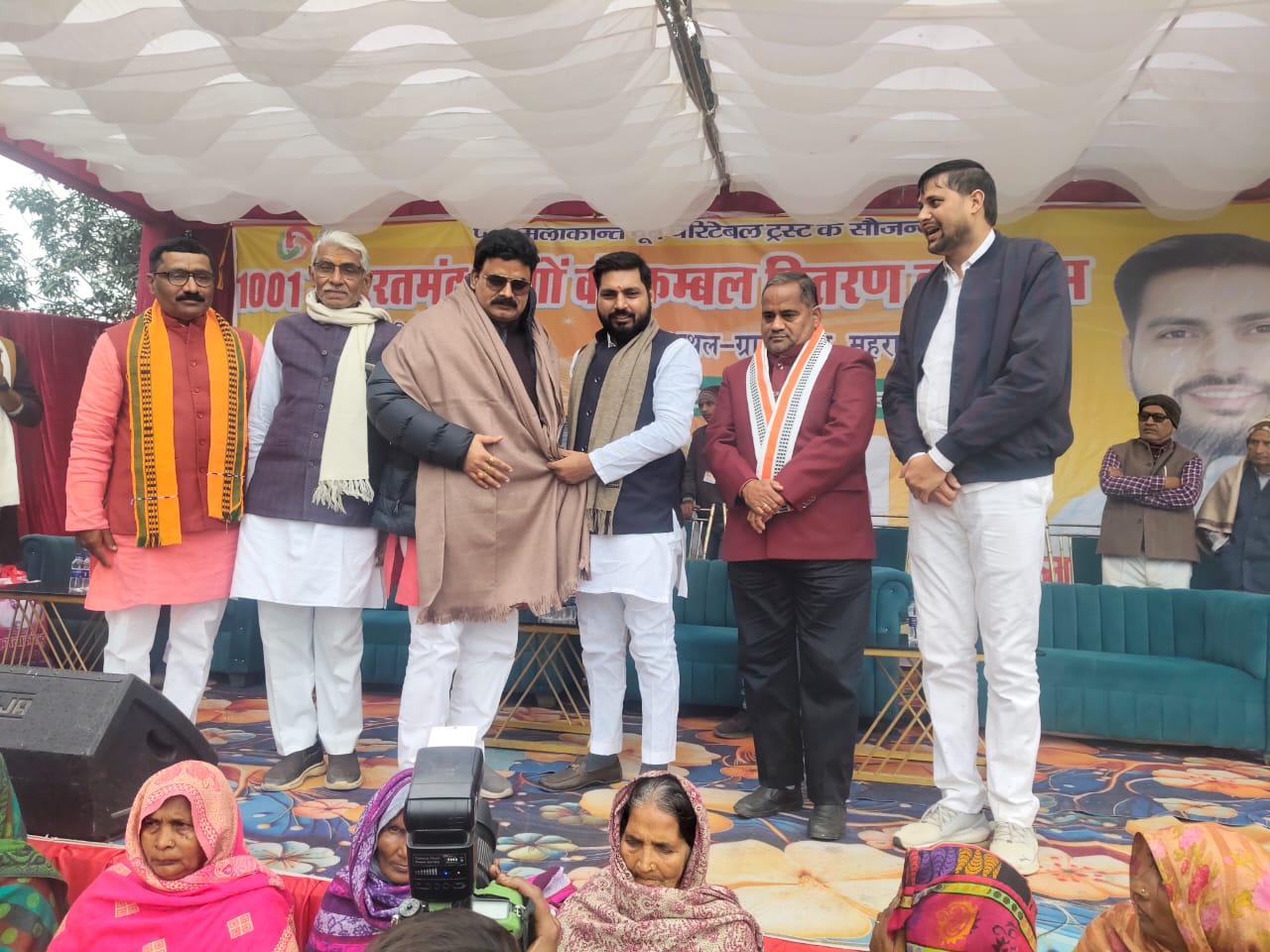 विधायक एवं जिलाध्यक्ष के हाथों 1001 कंबल का हुआ वितरण