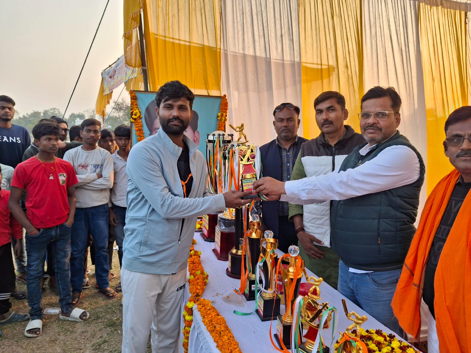 संजीव सिंह बलिया। नगरा।ताड़ीबड़ा गांव के श्री सुभाष इंटर कॉलेज ग्राउंड पर खेला गया 27वें शिवकुमार सिंह राज्य स्तरीय स्मृति क्रिकेट प्रतियोगिता का पहला सेमीफाइनल मैच बलिया और सिवान के बीच रोमांचक रहा। टॉस जीतकर पहले बल्लेबाजी करते हुए बलिया 17.5 ओवरों में 235 रनों पर आलआउट हो गई। बलिया की ओर से ऋतुराज ने 11 गेंदों पर 50 रन (6 छक्के, 3 चौके) की विस्फोटक पारी खेली, जबकि गुर्मान ने 24 गेंदों पर 50 रनों का योगदान दिया (4 छक्के, 5 चौके)। सिवान की ओर से जफर इमाम ने 4 विकेट लिए, वहीं फैजल और मितिश को क्रमशः 1-2 विकेट मिले।निर्धारित 236 रनों के विशाल लक्ष्य का पीछा करते हुए सिवान 20 ओवरों में 8 विकेट खोकर 171 रन ही बना सकी। सिवान की ओर से आशीब ने 23 गेंदों पर 33 रन और फरान ने 19 गेंदों पर 27 रनों की उपयोगी पारियां खेलीं। बलिया की ओर से दीपक पांडेय ने धारदार गेंदबाजी करते हुए 5 विकेट झटके, जबकि मंदार ने 2 विकेट लिए।64 रनों से जीत दर्ज कर बलिया ने लगातार दूसरी बार फाइनल में जगह बना ली। मैन ऑफ द मैच का पुरस्कार सर्वसम्मति से दीपक पांडेय (25 रन + 5 विकेट) को दिया गया, जिसे इंटर कॉलेज प्रबंधक मनीष सिंह ने प्रदान किया। हिटिक चौके के लिए विशाल सिंह को 501 रुपये समेत अन्य पुरस्कार मिले।मैच के आज उम्पायर हीरालाल और राजीव सिंह रहे। कमेंटेटर राजेश सिंह, विपिन और चंद्रशेखर सिंह ने जिम्मेदारी निभाई, जबकि स्कोरिंग सुनील और सत्यम ने संभाली। पांडाल में मनोज सिंह, उमाशंकर राम (नगरा चेयरमैन प्रतिनिधि), सभासद लाल बहादुर सिंह( चचया )प्रदीप सिंह (मुकेश), मुकेश सिंह, आलोक सिंह, टीपू सिंह,नवतेज सिंह समेत कमेटी के सभी सदस्य व अन्य सम्मानित लोग उपस्थित रहे।