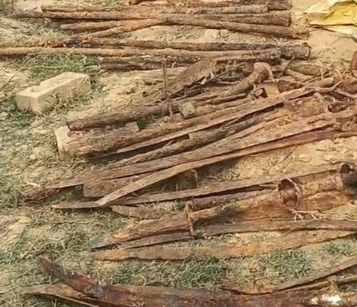 देखा तो वहां से पुराने समय की तलवार, खंजर, बरछी, और बंदूके निकली । फिलहाल मौके पर निगोही पुलिस और राजस्व विभाग के लोग मौजूद हैं और पुरातत्व विभाग को सूचना दे दी गई ।