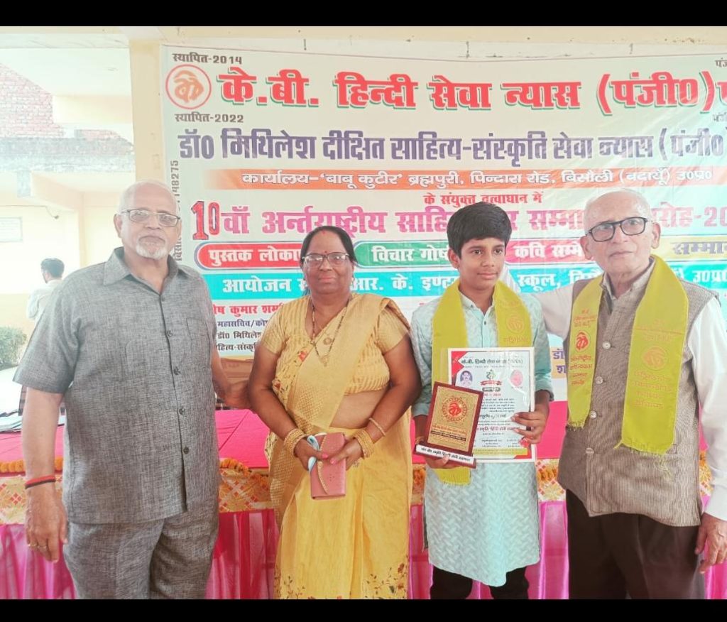 (आशुतोष शर्मा) बदायूं। हिन्दी साहित्य की सेवा में निरन्तर बिसौली में साहित्यकारों का महाकुंभ कल रविवार को सम्पन्न हुआ। इसमें देश के 16 प्रांतों के साहित्यकारों ने शिरकत की, जिनको संस्था ने सम्मानित किया। साथ ही कई पुस्तकों का लोकार्पण भी किया गया।के0बी0हिंदी सेवा न्यास(पंजी0)एवं डॉ0 मिथिलेश दीक्षित साहित्य- संस्कृति सेवा न्यास(पंजी0) के तत्वावधान में बिसौली जनपद बदायूं के आर0के0 इंटरनेशनल स्कूल में देश के साहित्यकारों का महाकुंभ रविवार को सम्पन्न हुआ। इसमें देश के 16 प्रांतों के साहित्यकारों ने शिरकत की, जिनको संस्था ने सम्मानित किया। साथ ही कई पुस्तकों का लोकार्पण भी किया गया।