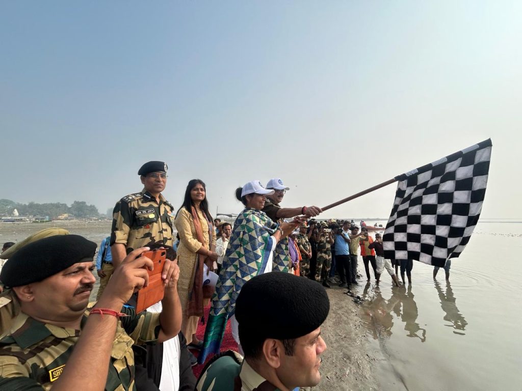 बदायूँ । आल इण्डिया वुमेन राफ्टिंग दल सोमवार को बीएसएफ की महिला टीम, गंगा नदी में राफ्टिंग करती हुई भागीरथी घाट, कछला गंगा घाट पर पहुंची, जिसमें 20 महिला कार्मिक है और टीम की कमांडर उ0नि0 प्रिया मीणा है। यह अभियान बीएसएफ (गृह मंत्रालय) और एनएमसीजी (जल शक्ति मंत्रालय) का संयुक्त अभियान है। जिसका उद्देश्य गंगा नदी को स्वच्छ रखने और महिला सशक्तिकरण का प्रचार प्रसार करके लोगों को जागरुक करना है। जिलाधिकारी निधि श्रीवास्तव ने मंगलवार को कछला घाट से राफ्टिंग टीम का उत्साहवर्धन कर आगे के लिए झण्डी दिखाकर रवाना किया।