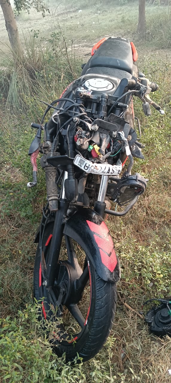 शनिवार की रात लगभग दो बजे म्याऊं हजरतपुर मार्ग पर जय जवान जय किसान गोल्ड स्टोर के पास किसी अज्ञात वाहन ने बाईक में जोरदार टक्कर मार दी। टक्कर लगने से बाईक पर सवार, थाना उसहैत क्षेत्र के गांव बरैनिया निवासी विपिन (22) पुत्र रामौतार की मौत हो गई।वहीं साथ में ही बैठा 18 वर्षीय मृतक का भांजा हैप्पी पुत्र दिनेश निवासी बरहाई फर्रुखाबाद गम्भीर रूप से घायल हो गया। सुबह लगभग चार बजे कस्बा लोग टहलने गए, तब लोगों ने दोनों रोड पड़ा देख कर पुलिस एवं एंबुलेंस को फोन किया। सूचना पर पहुंची पुलिस ने घायल को जिला अस्पताल भेजा। और मृतक के शव को शील पोस्टमार्टम के लिए भेज दिया। बतादे कि उसहैत थाना क्षेत्र के बरैनिया निवासी विपिन एवं बरहाई फर्रुखाबाद निवासी हैप्पी दिल्ली किसी जगह प्राइवेट नौकरी करते थे। जहां दिल्ली से बाईक से विपिन अपनी ससुराल भांजे को लेकर हजरतपुर थाना क्षेत्र के गांव कलेक्टरगंज जा रहे थे। जहां म्याऊं – हजरतपुर मार्ग पर थाना अलापुर क्षेत्र की म्याऊं पुलिस चौकी क्षेत्र जय जवान जय किसान गोल्ड स्टोर के पास अज्ञात वाहन ने टक्कर मार दी। जिसमें मौके पर ही विपिन की मौत हो गई एवं हैप्पी गम्भीर रूप से घायल हो गया। मृतक की दो वर्ष पूर्व शादी हुई थी, मृतक के कोई संतान नहीं है। मृतक दो भाई थे।