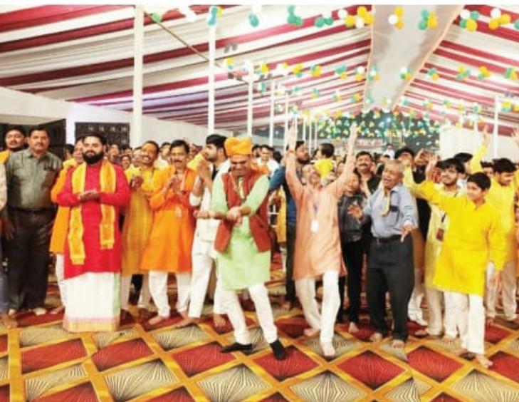 कथा में श्री कृष्ण जन्मोत्सव पर झूम कर नाचे भक्त