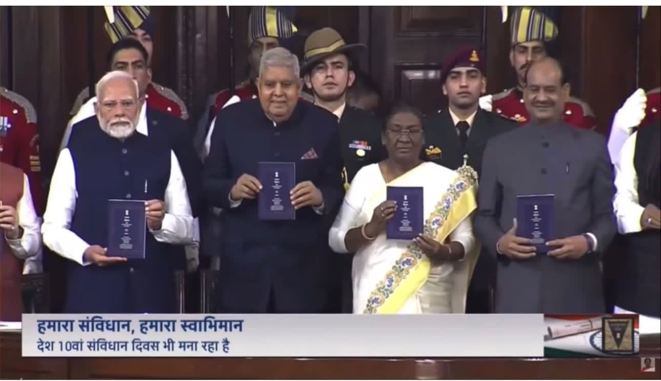 संविधान दिवस के अवसर पर भारतीय संसद के सेंट्रल हाल में मंगलवार को देश के महामहिम राष्ट्रपति द्रौपदी मुर्मू प्रधानमंत्री नरेंद्र मोदी लोक सभा अध्यक्ष ओम विरला उप राष्ट्रपति सहित लोक सभा में विपक्ष के नेता राहुल गांधी राज्य सभा में विपक्ष के नेता मल्लिका अर्जुन खरगै सहित कई केबिनेट मंत्री ने देश के दसवें संविधान दिवस के अवसर पर भारतीय संविधान के मैथिली अनुवादित संविधान के मूल प्रति विमोचन किया गया।ज्ञात हो कि संविधान के अष्टम अनुसूची में देश के बाईस भाषाओं को राष्ट्रीय भाषा का दर्जा प्राप्त है।संविधान दिवस के अवसर पर भारत के प्राचीनतम दो भाषा में संविधान का विमोचन किया गया।जिसमें संस्कृत और मैथिली शामिल था।