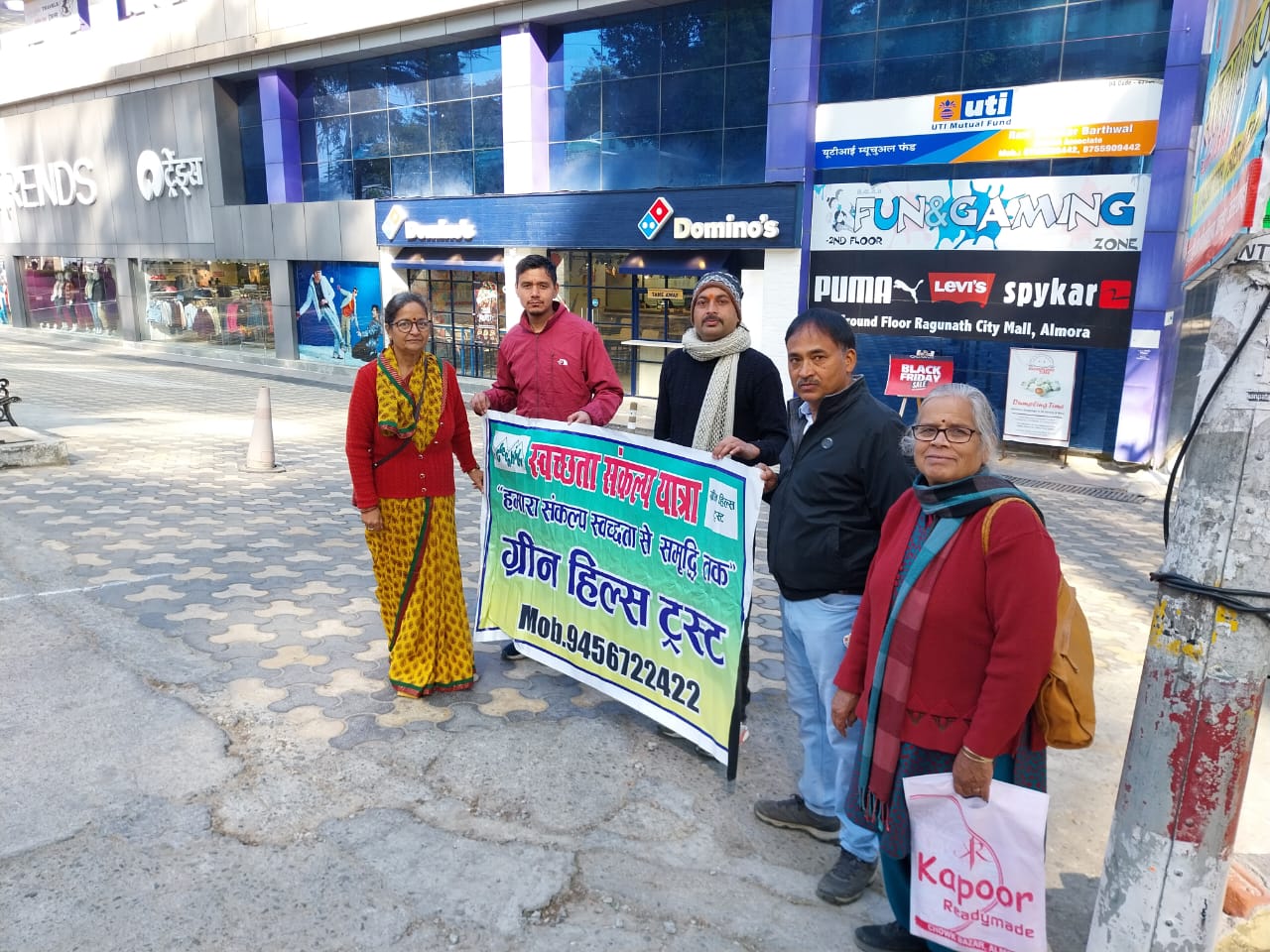 अल्मोड़ा । ग्रीन हिल्स ट्रस्ट द्वारा आयोजित ‘स्वच्छता संकल्प यात्रा’ का शुभारंभ विवेकानंदपुरी वार्ड में स्थित स्टेडियम के नीचे से किया गया। इस यात्रा का मुख्य उद्देश्य लोगों को स्वच्छता के प्रति जागरूक करना और समुदाय में स्वच्छता के प्रति जिम्मेदारी और कर्तव्य की भावना को बढ़ावा देना था। यात्रा रघुनाथ सिटी मॉल से शुरू होकर न्यू इंद्रा कॉलोनी तक के क्षेत्र में आयोजित की गई, जिसमें सैकड़ों निवासियों ने सक्रिय रूप से भाग लिया और इस पहल को सफल बनाने में योगदान दिया।